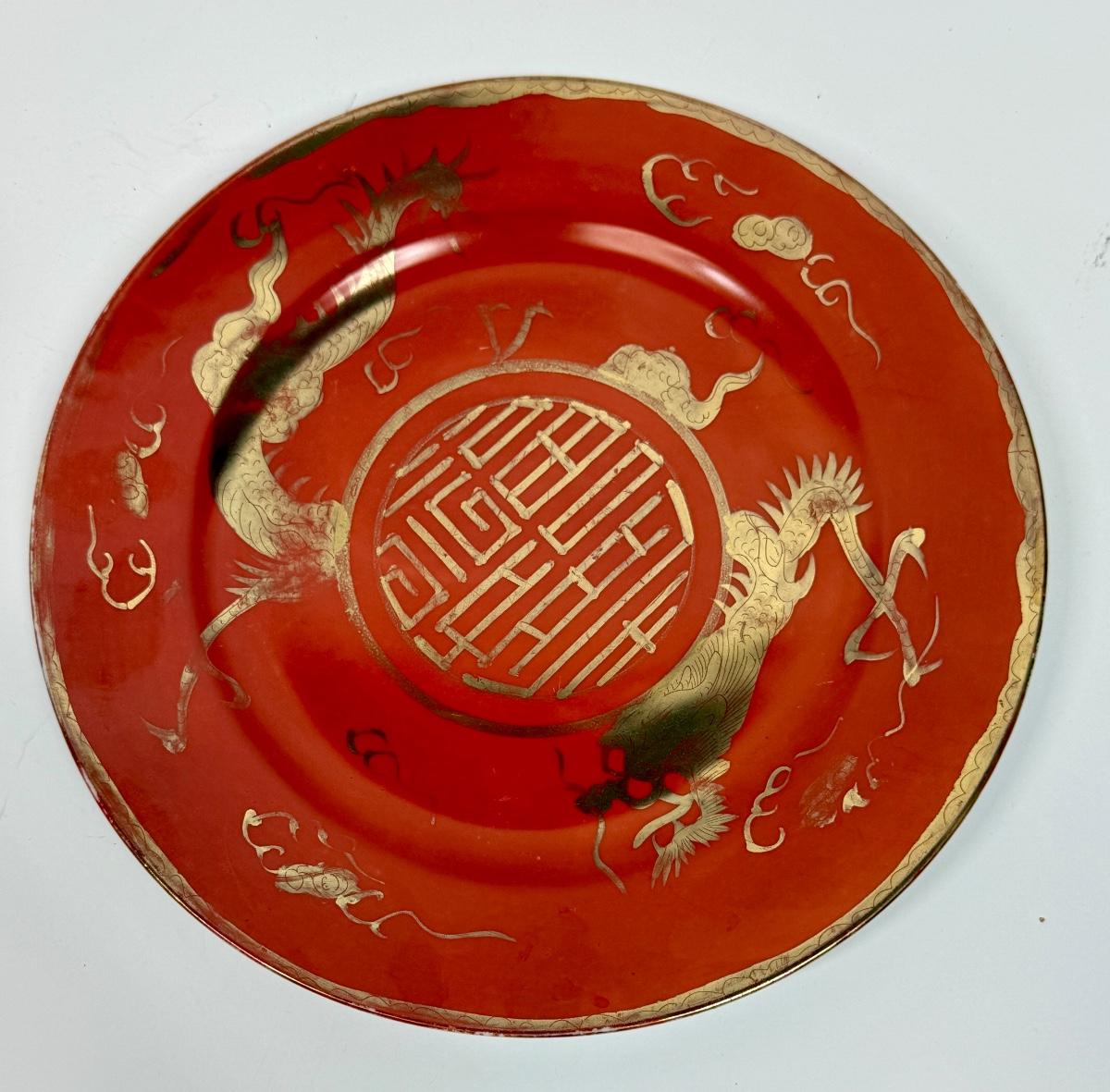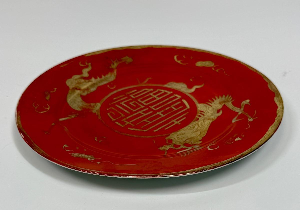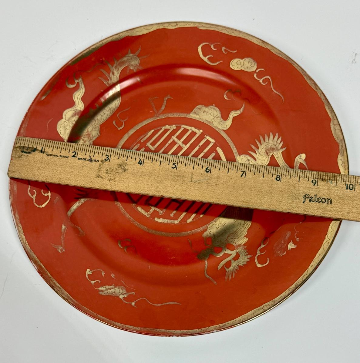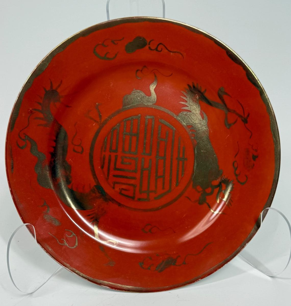 Japanese Meiji Period Eirku porceLain Plate Golden Dragon Iron red gold