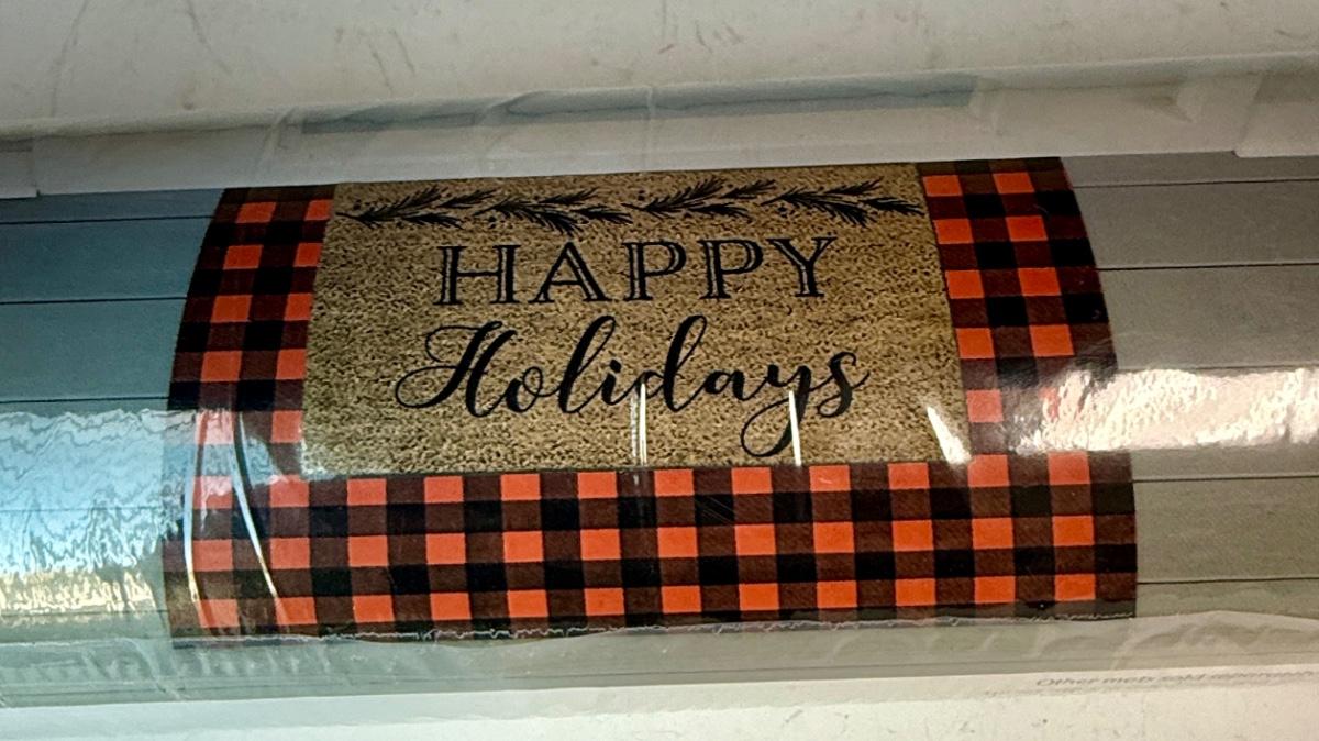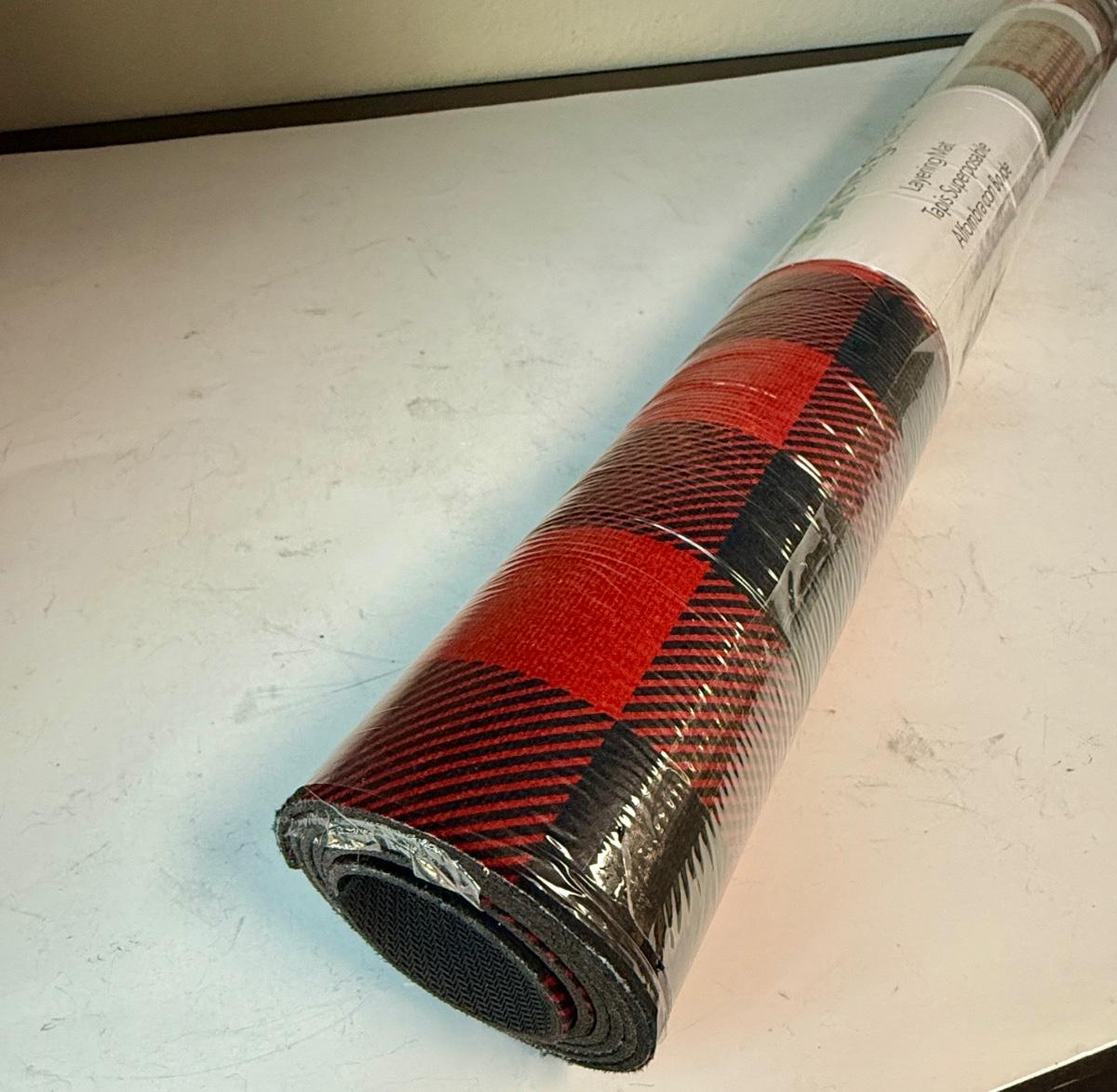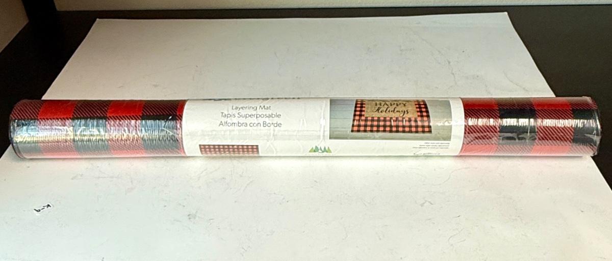 New in Package rolled Mat - HAPPY HOLIDAYS on red & black Check Print