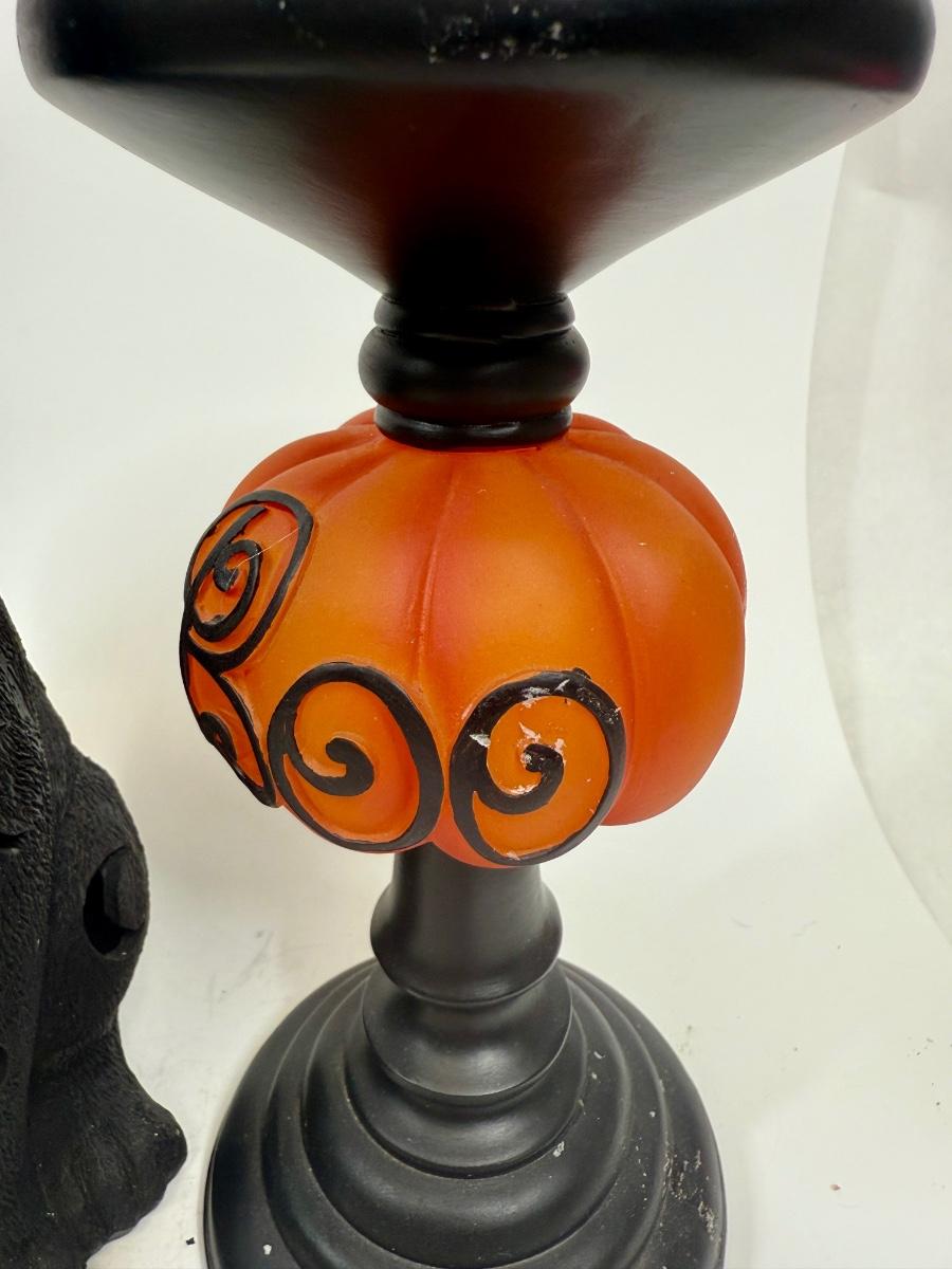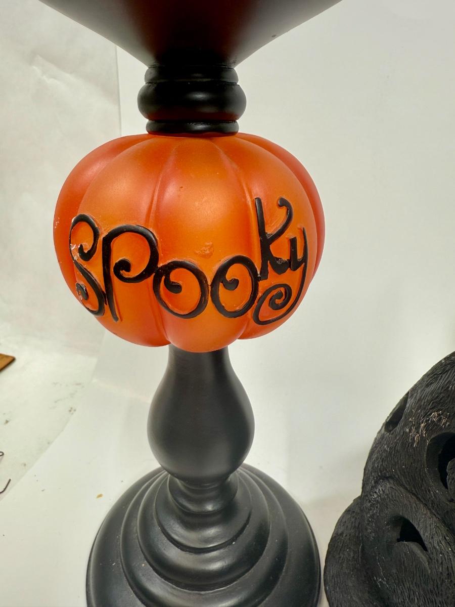 Black Cat Mystical Kitty with "Spooky" & "Boo Candle Holders