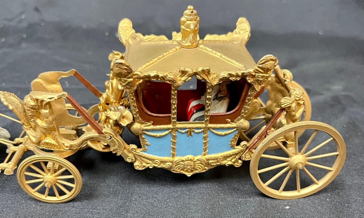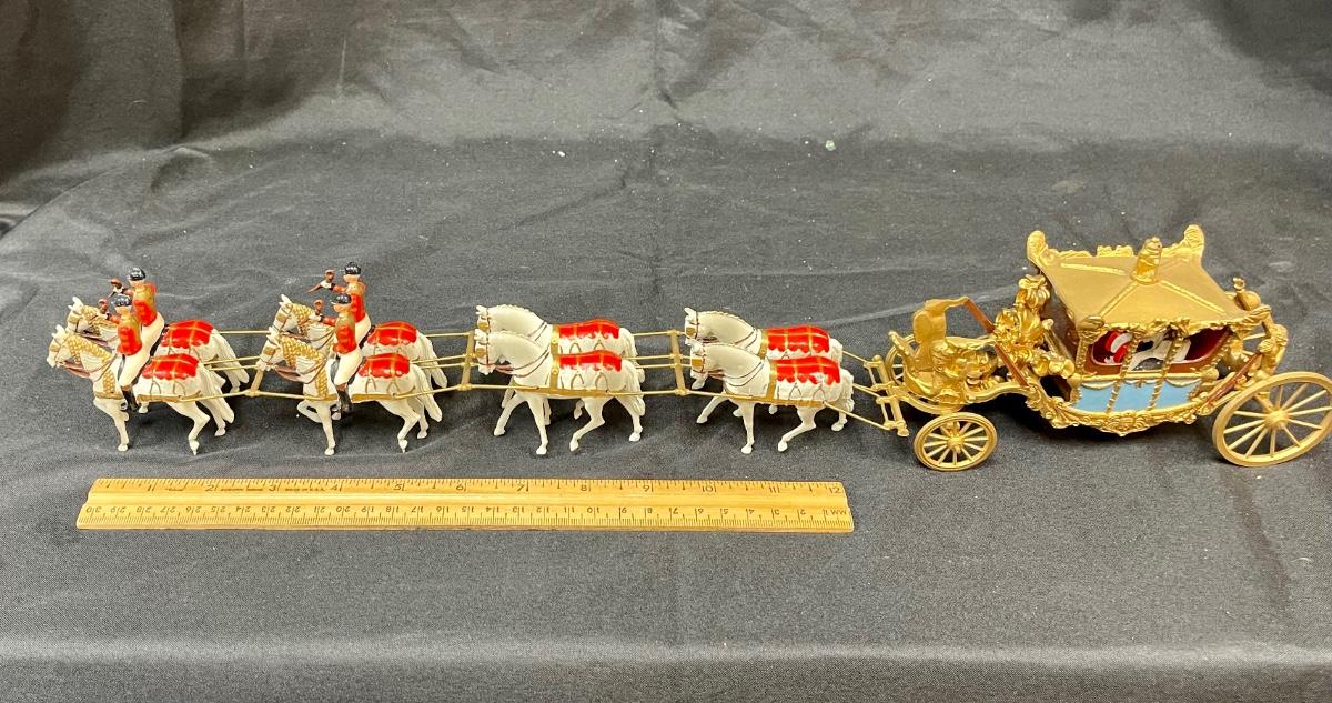 Vintage Enameled Metal Horse Drawn Royal Carriage Made in England