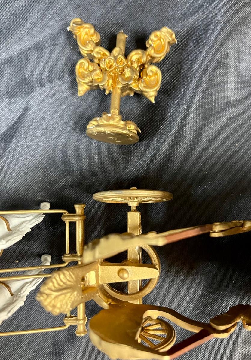 Vintage Enameled Metal Horse Drawn Royal Carriage Made in England. In previously displayed condition.
