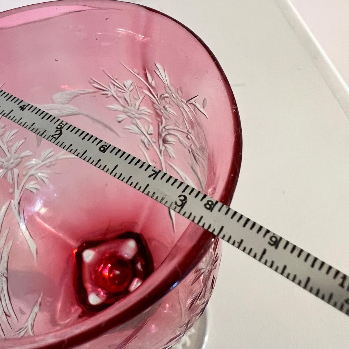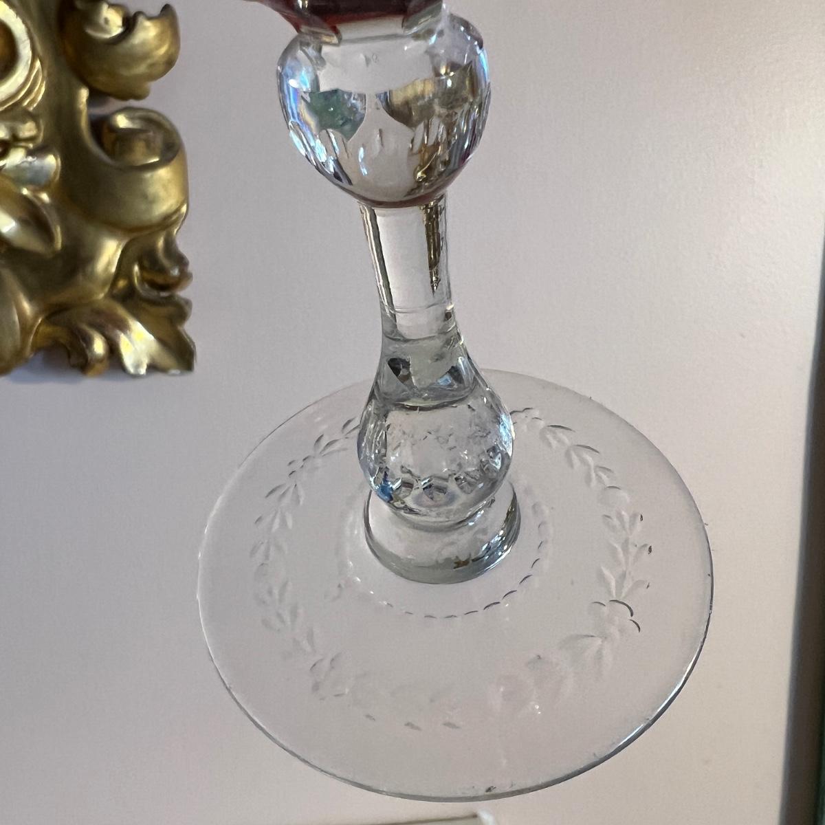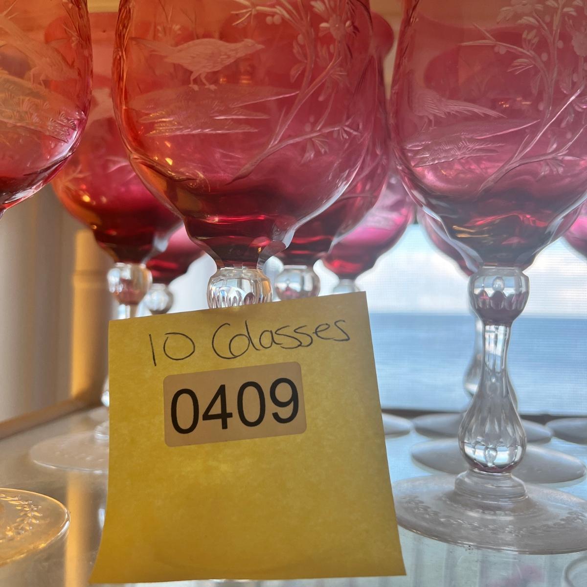 Vintage Set 10 Cranberry Etched Wine Glasses