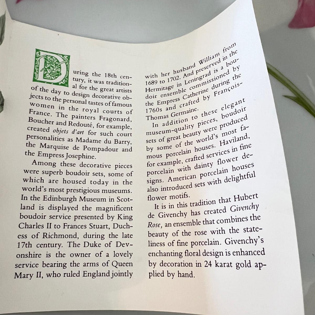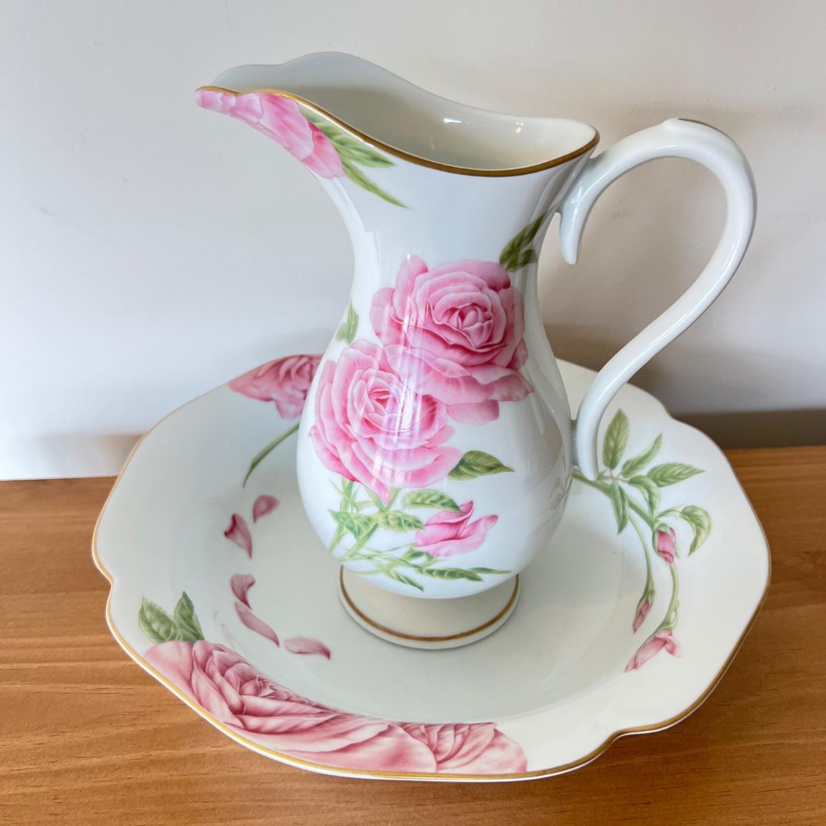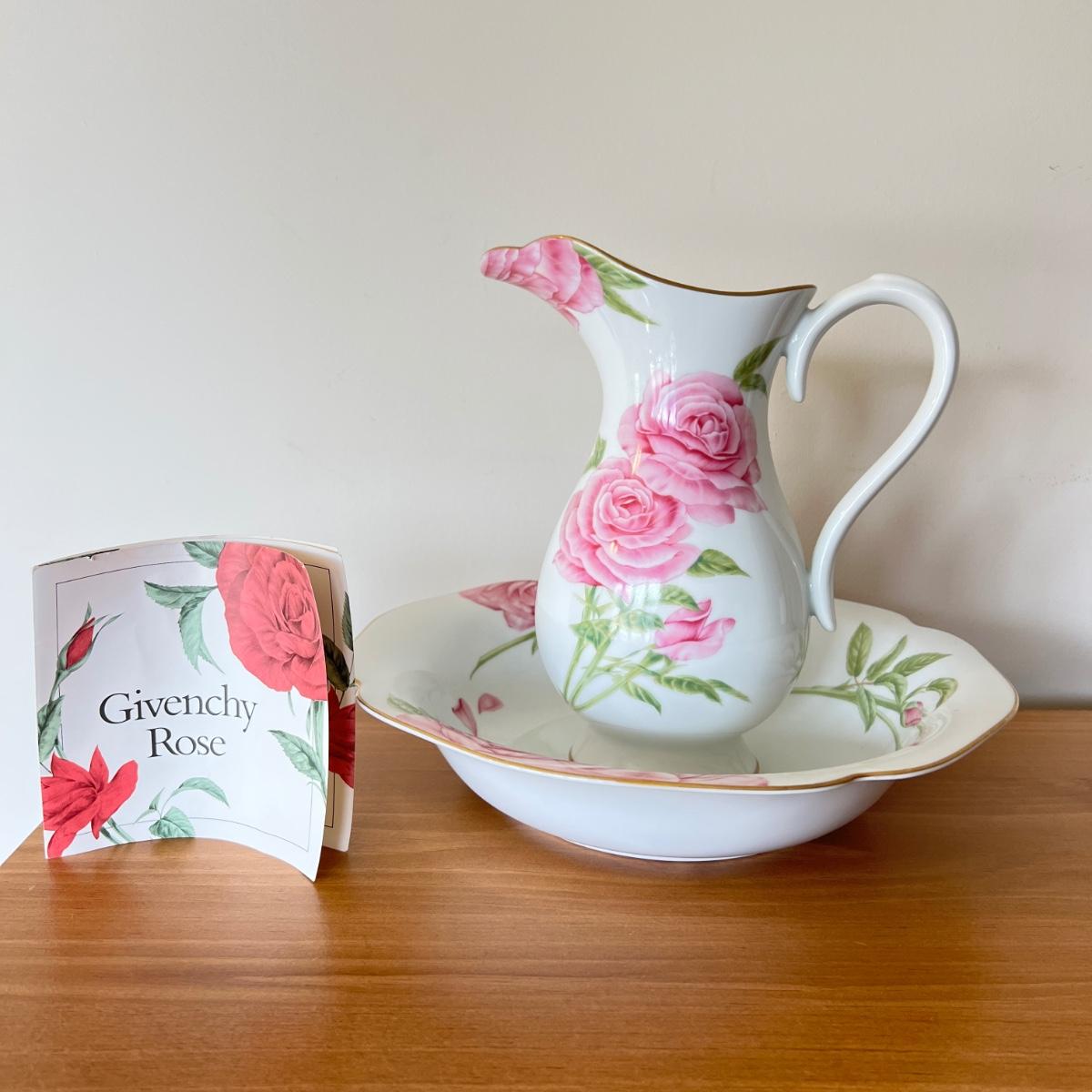 Vintage Givenchy Rose Pitcher Wash Basin w Authenticity Certificate