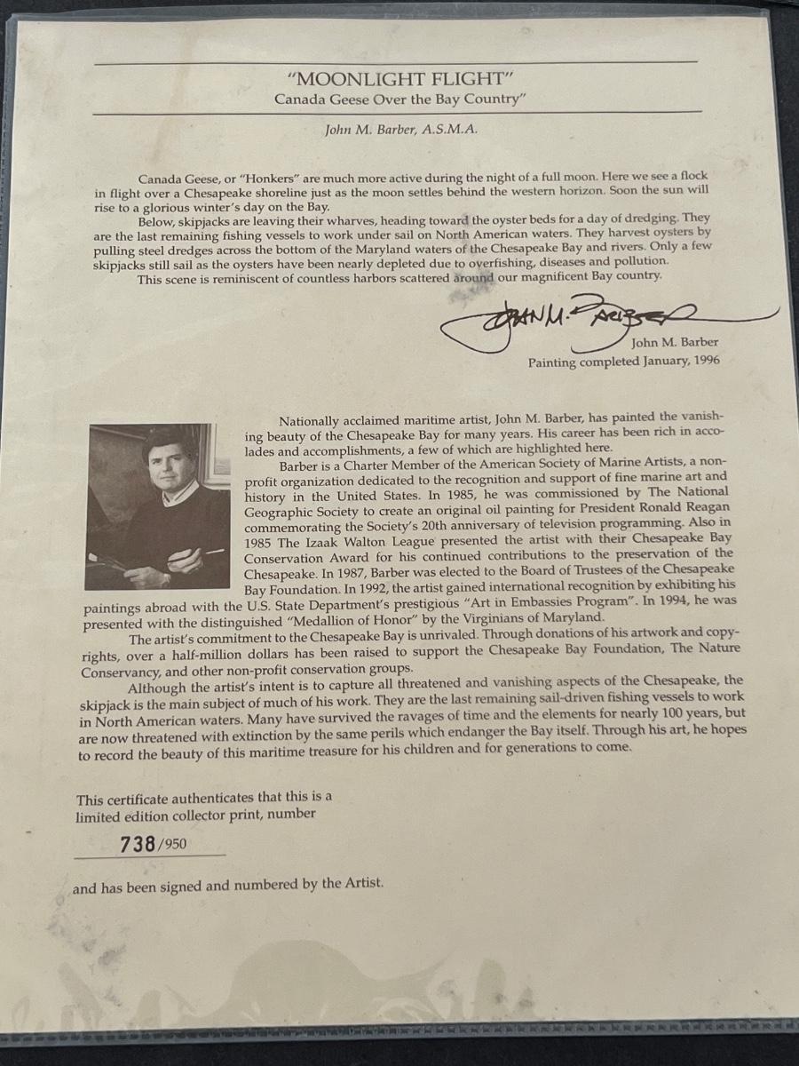 Authentic Limited Edition Collectors Print "Moonlight Flight" by John M. Barber