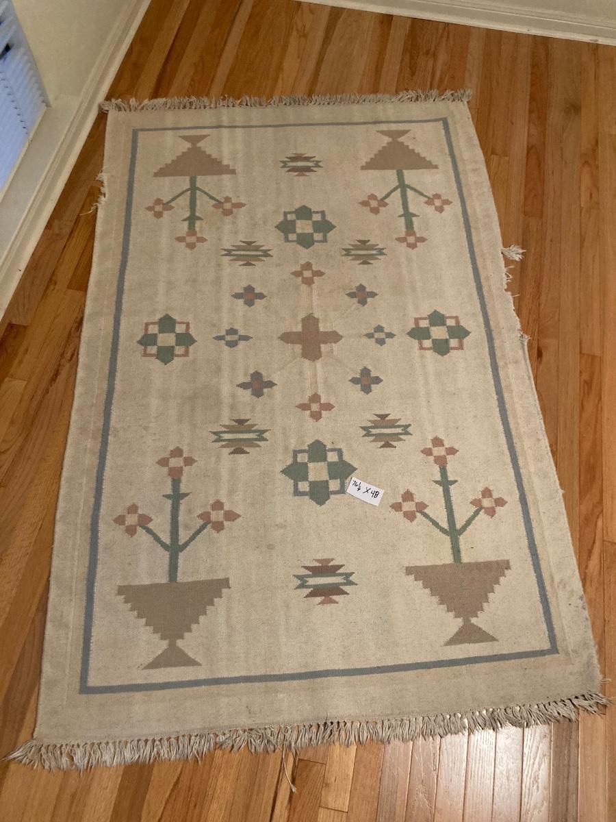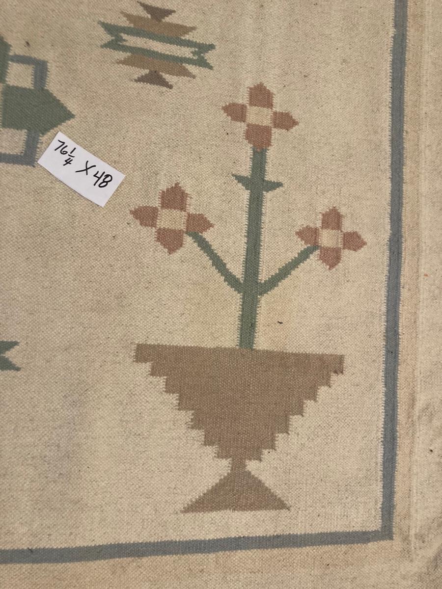 Dhurrie rug - B. 76-1/4 x 48. Has some damage - see photo