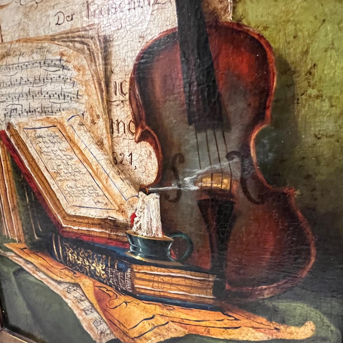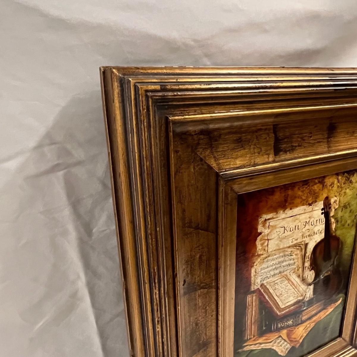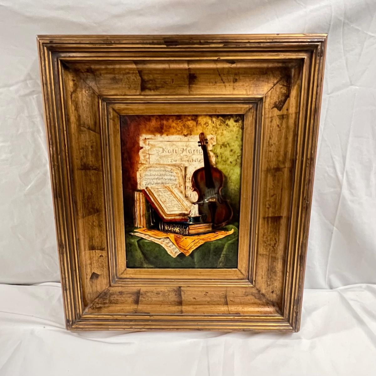 This attractive still life appears to be a painting on canvas by the artist Diadorin. Frame is wood with a distressed gold finish. Signature that reads Diadorin is stamped on the front and written on the back of the canvas.
