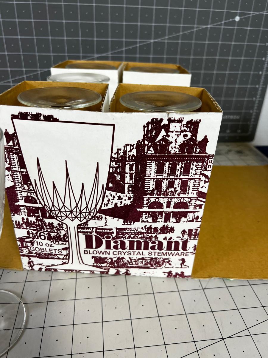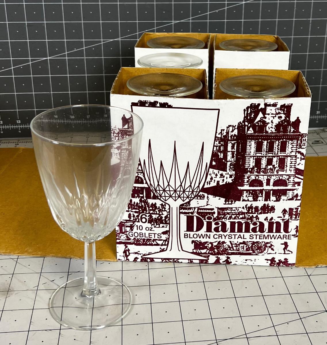 DIAMANT Blown Crystal 10 oz. Goblets in Original Box (6)