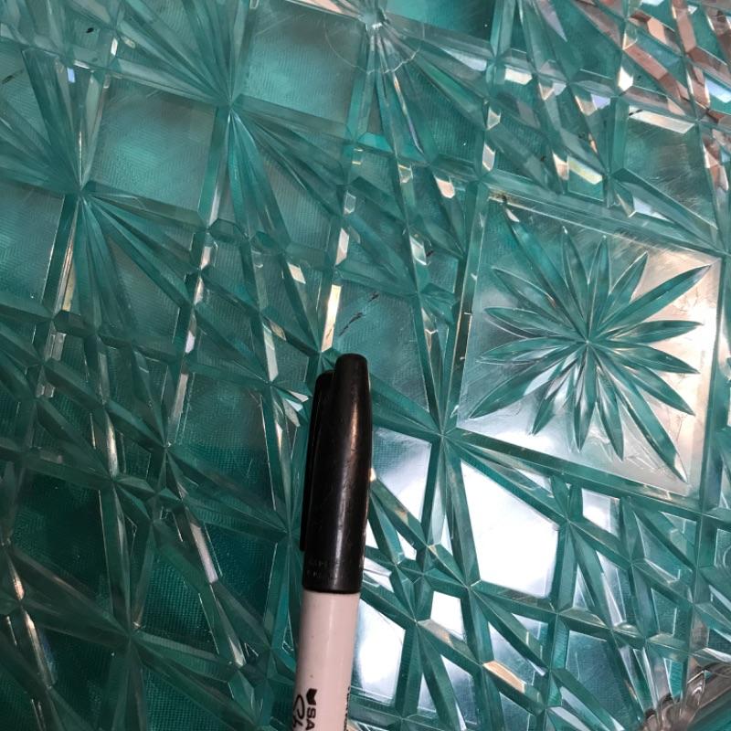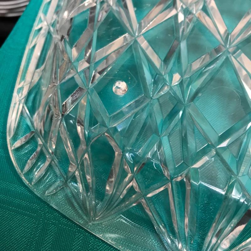 This comes wrapped in its original packaging however it is in used condition with scratches and discoloration on the bottom as indicated in the photos. No cracks or chips are present however.