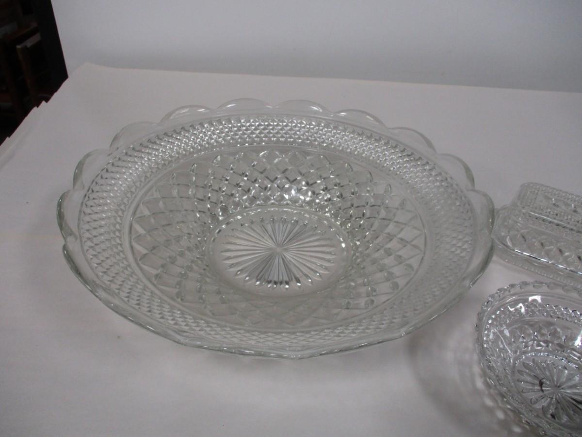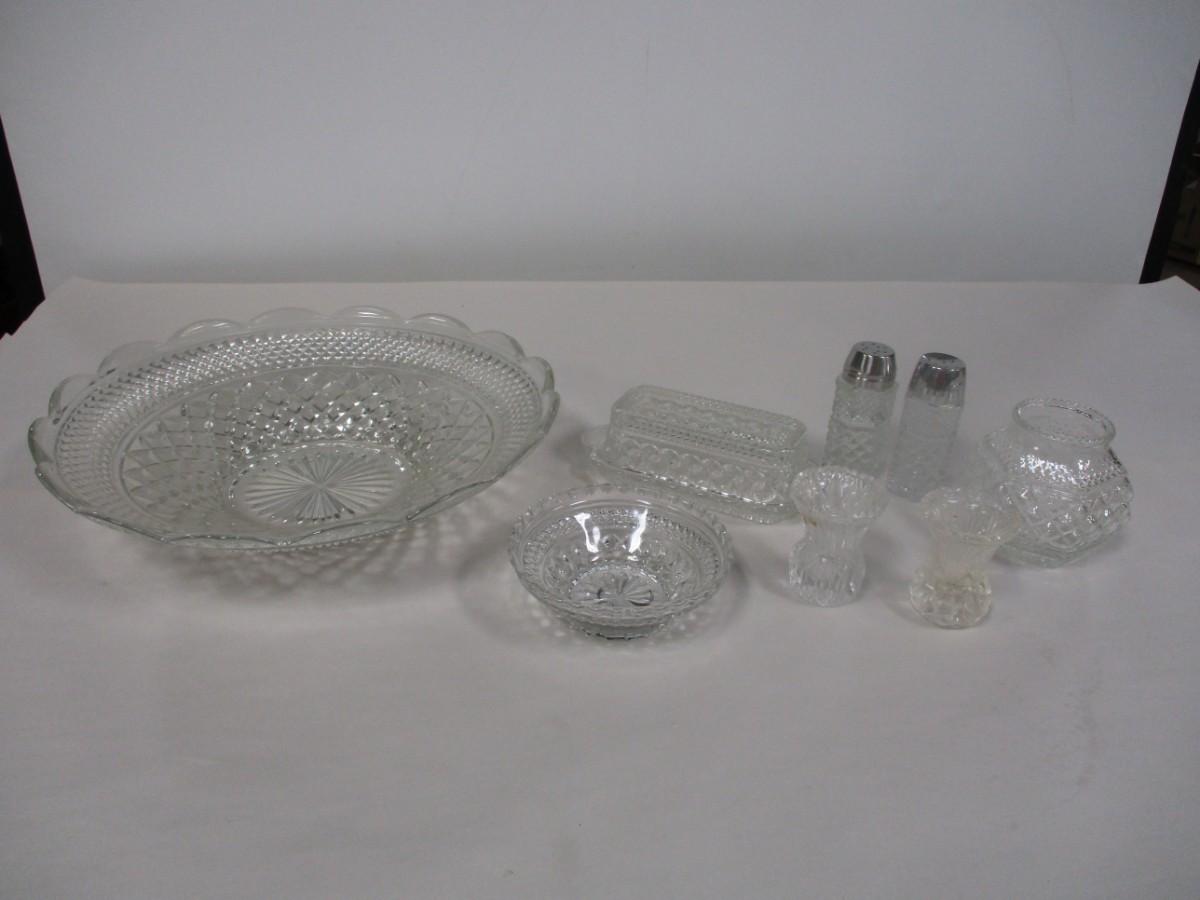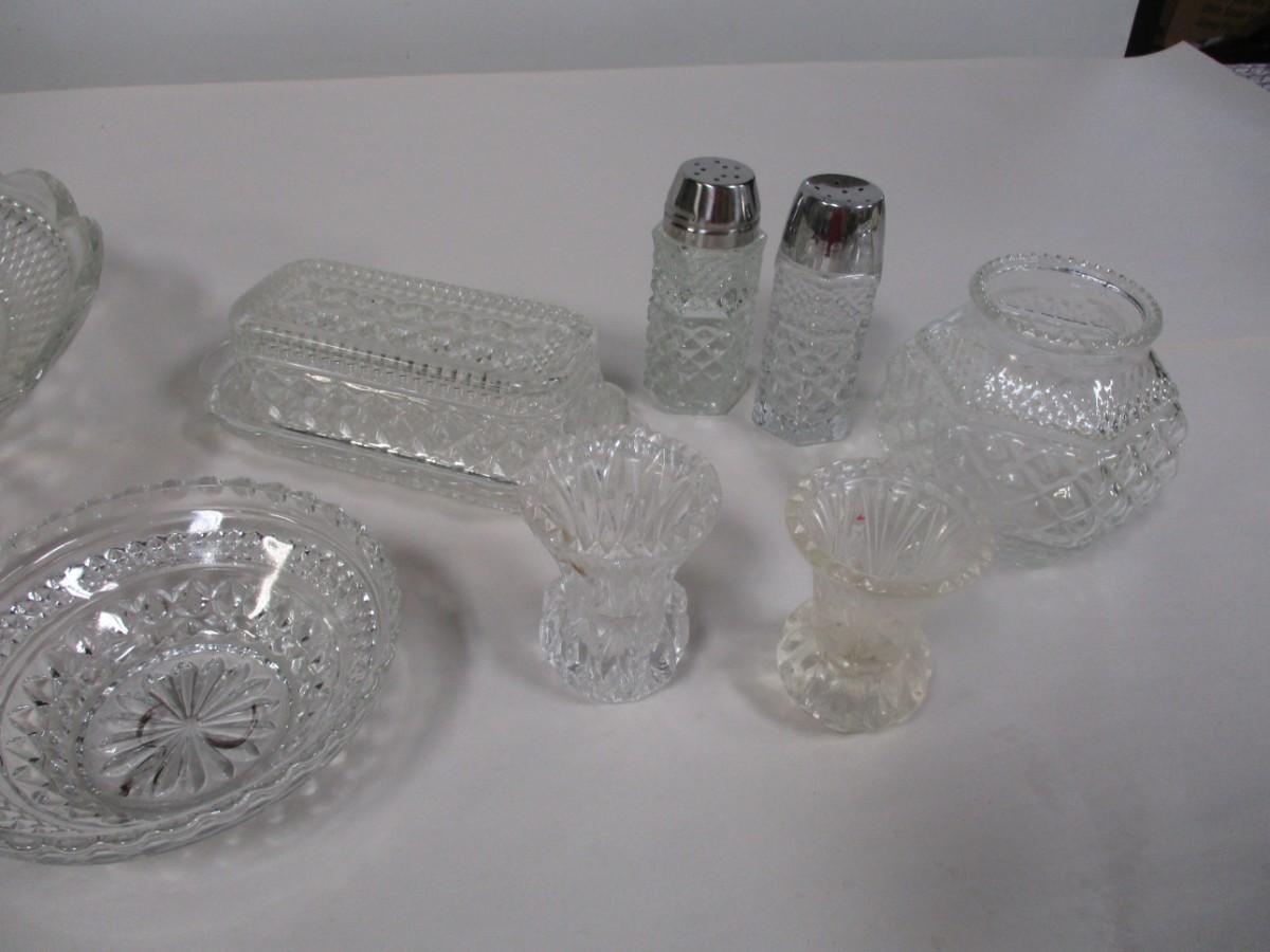 Diamond Cut Crystal Glass Butter Dish S & P Shakers Toothpick Holders
