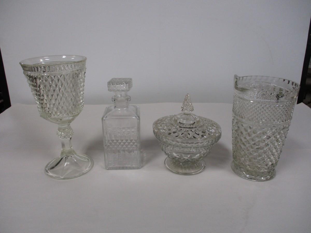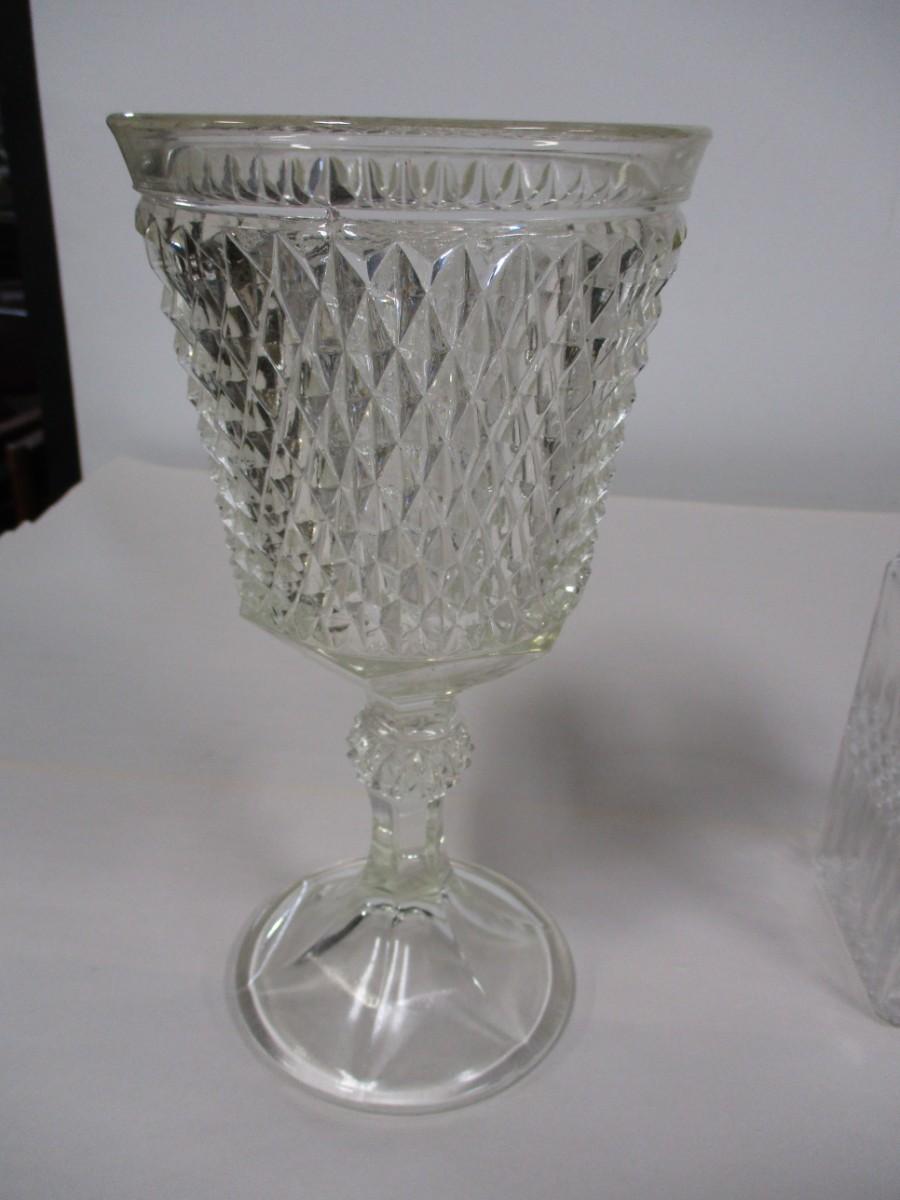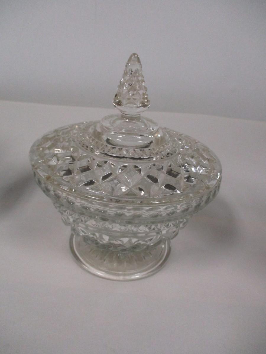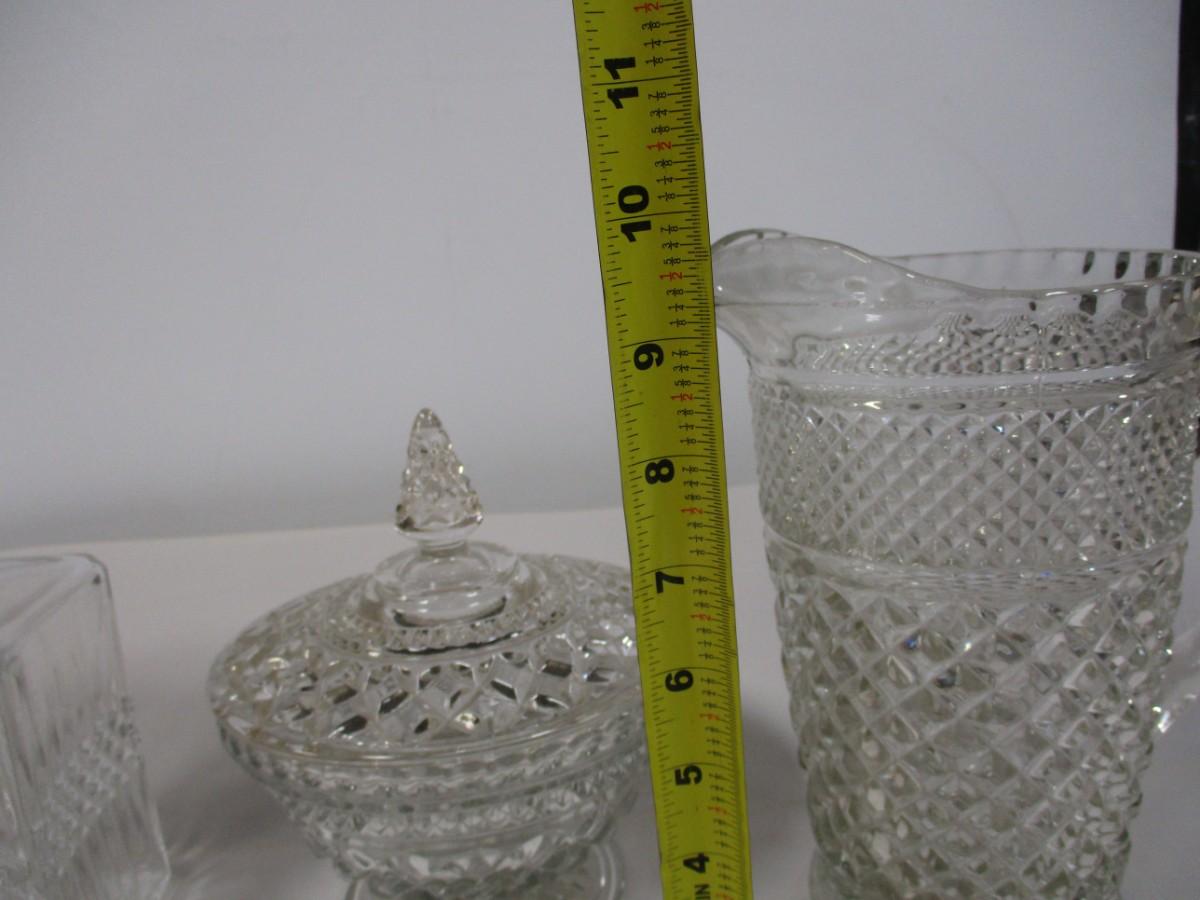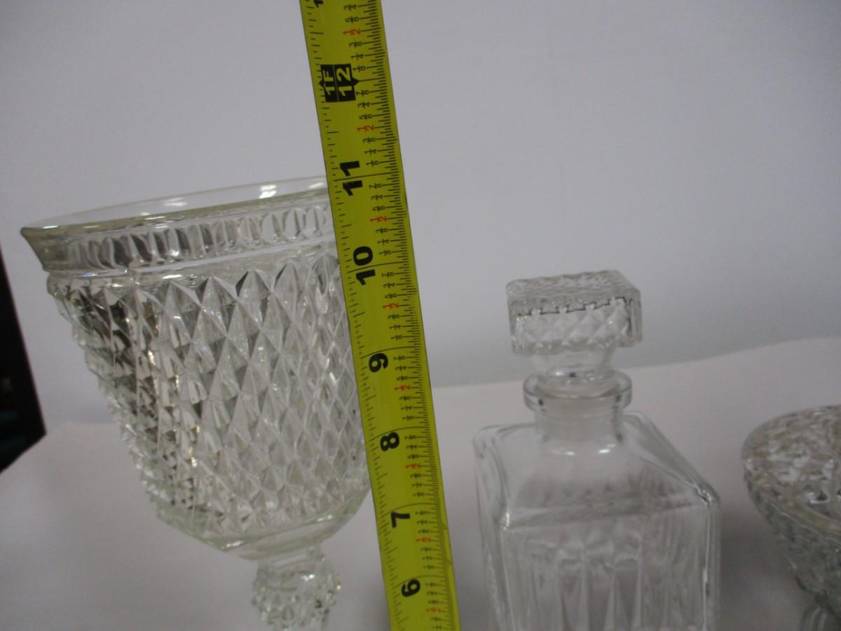 Diamond Cut Crystal Glass Decanter Candy Dish Pitcher Footed Vase