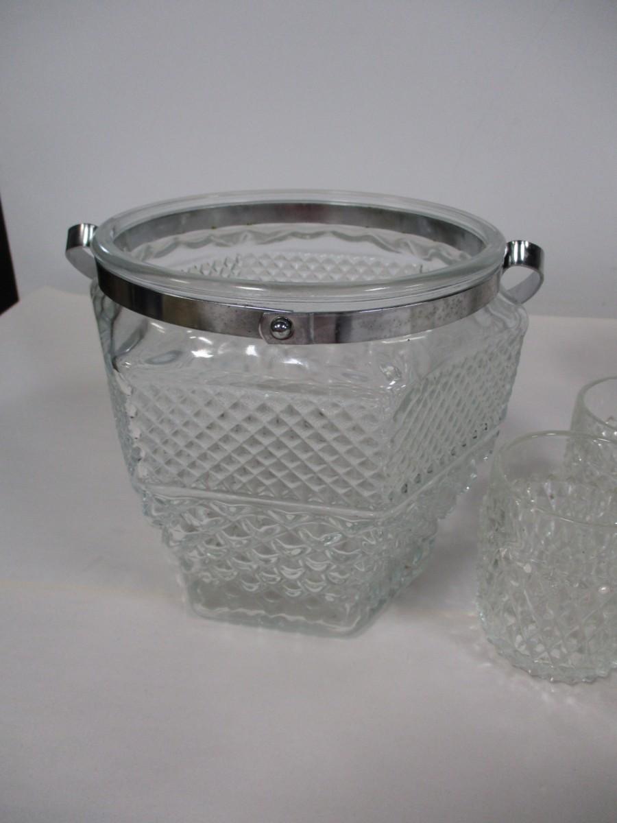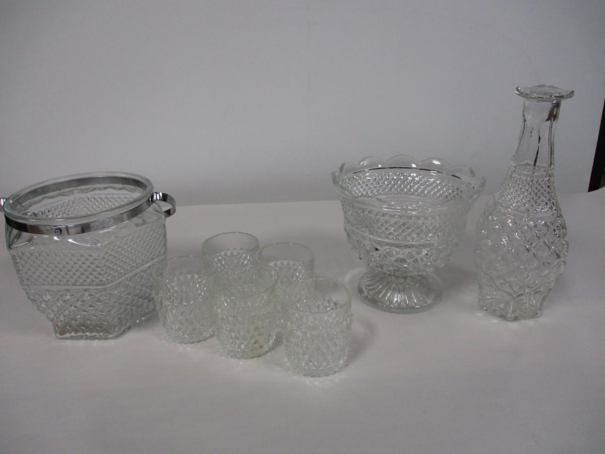 Diamond Cut Crystal Glass Vase Ice Bucket With Glasses Pedestal Bowl