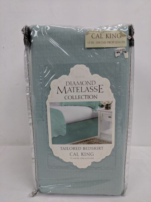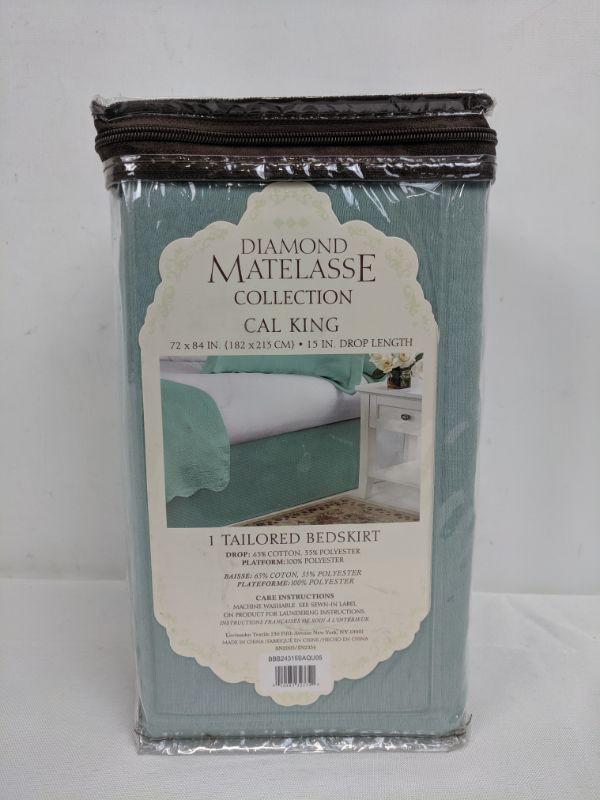 Diamond Matelasse Collection Tailored Bedskirt Cal King, Teal - New