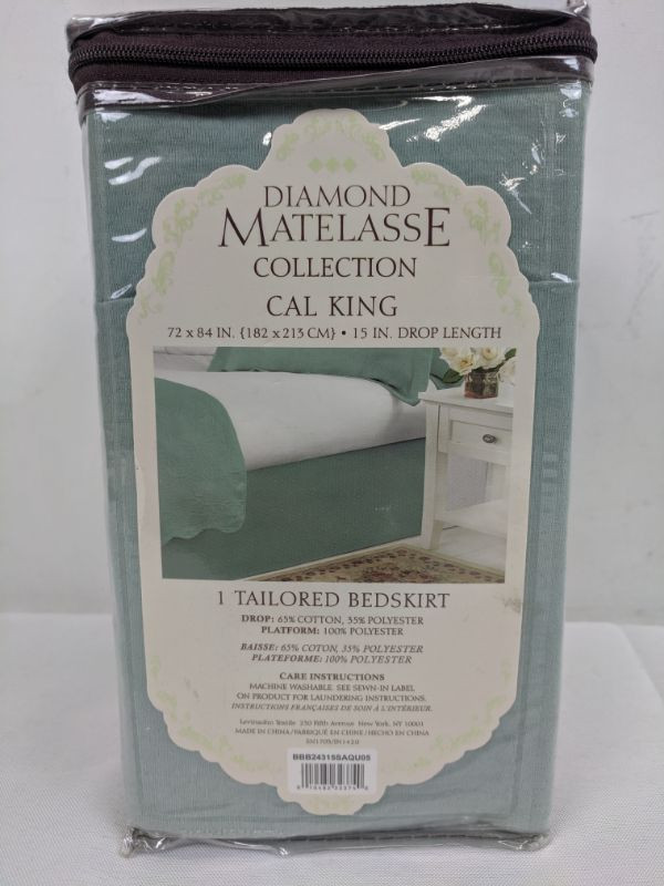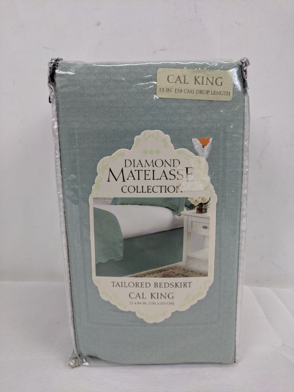 Diamond Matelasse Collection Tailored Bedskirt Cal King, Mint - New