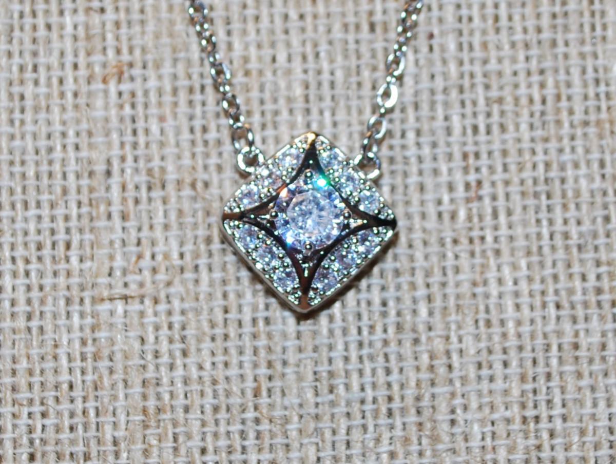 Diamond Shaped Beautiful Glitter PENDANT (½" x ½") on a Silver Tone Necklace Chain 18" L