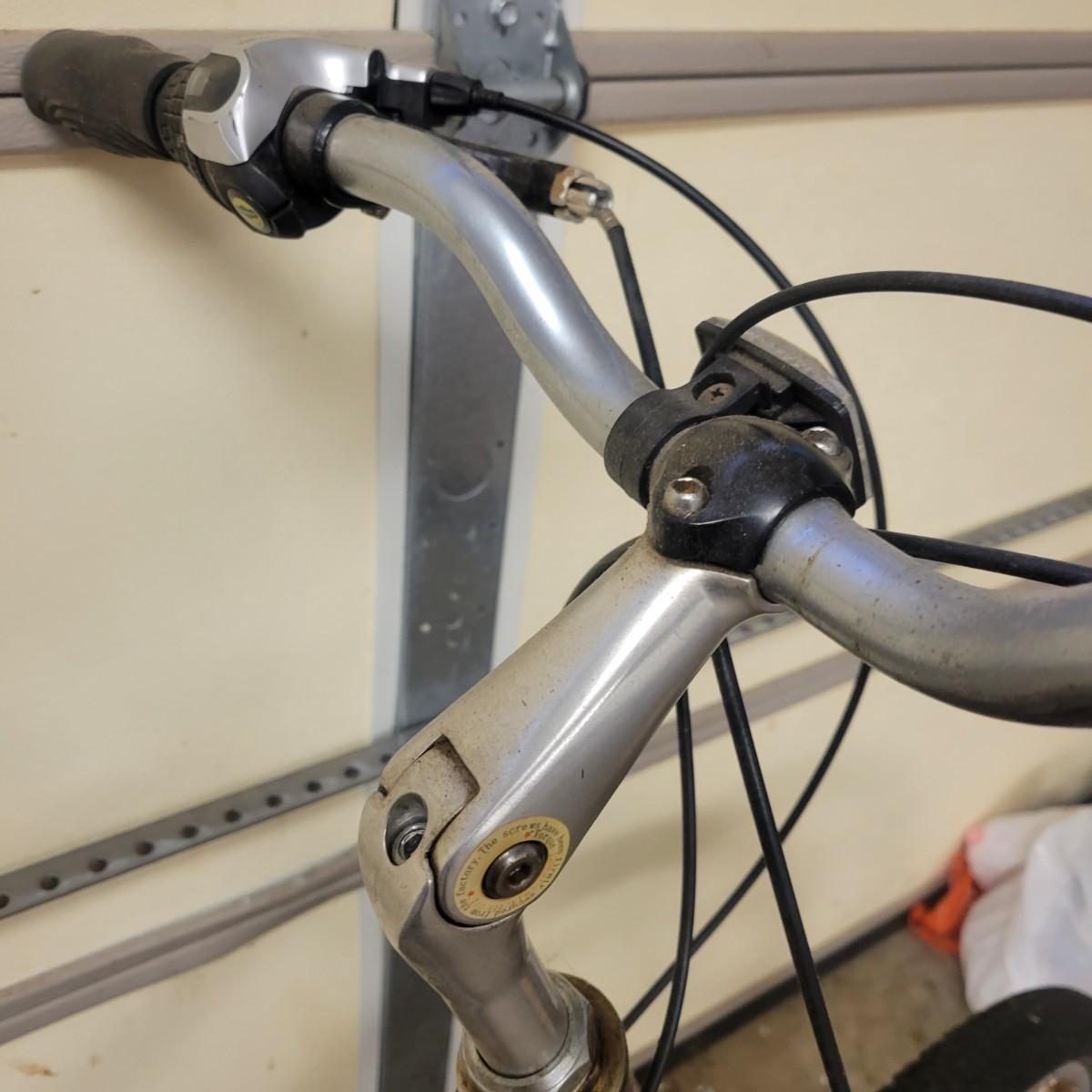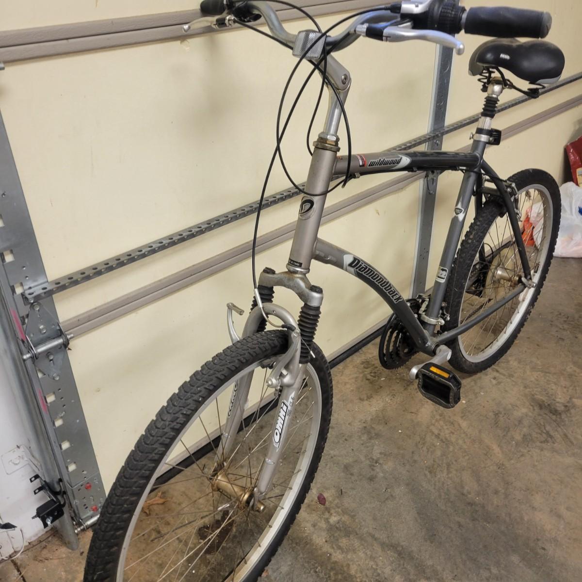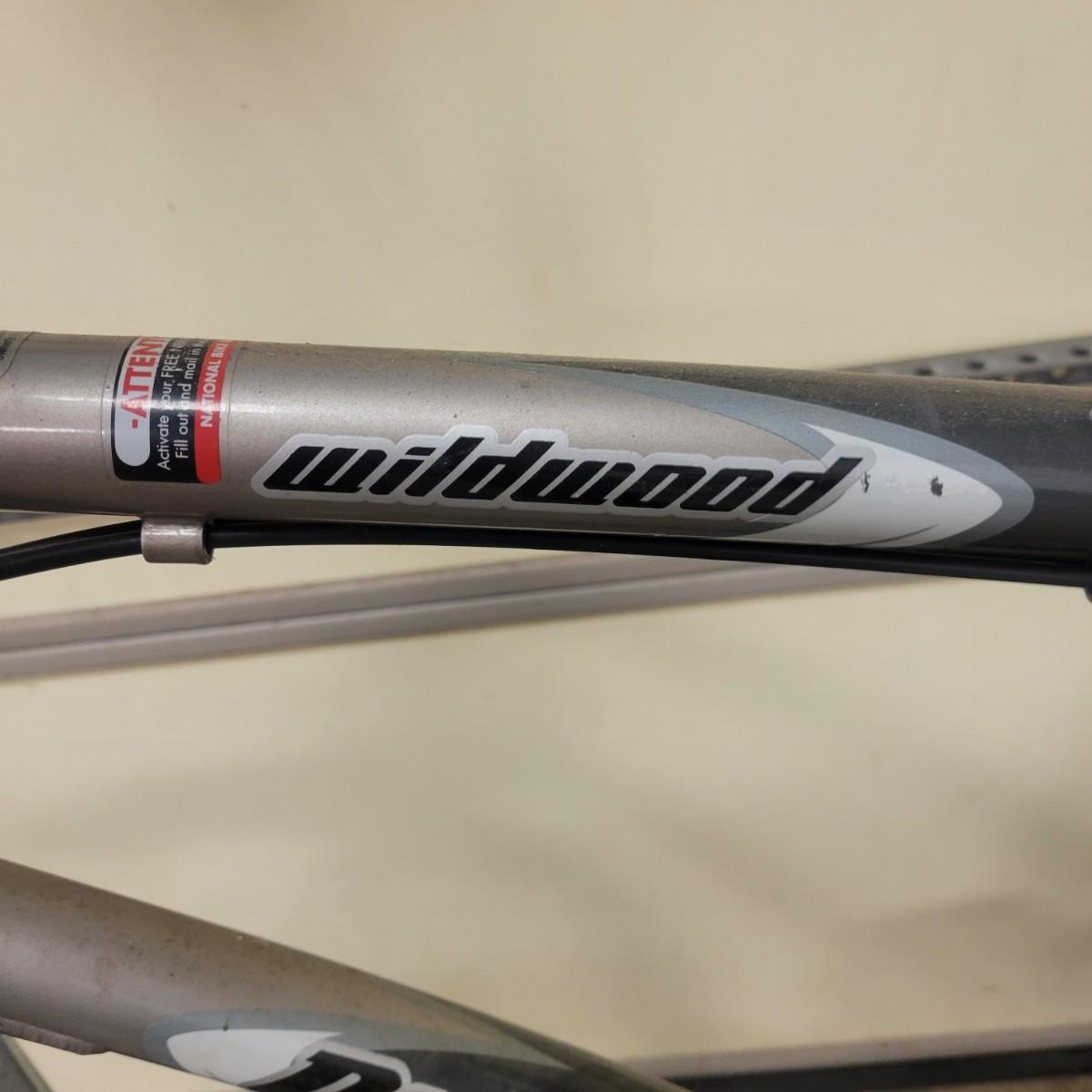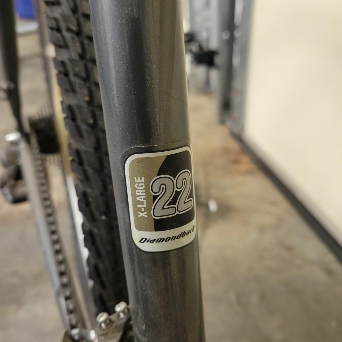 A size XL Diamondback Wildwood in good condition with some minor blemishes. No major dents but one small scratch. This bicycle features a 3 x 7 gearing with Shimano Tourney components and is constructed of 6061 aluminum. The handlebar stem is adjustable and the top tube measures approximately 22". Local pickup only