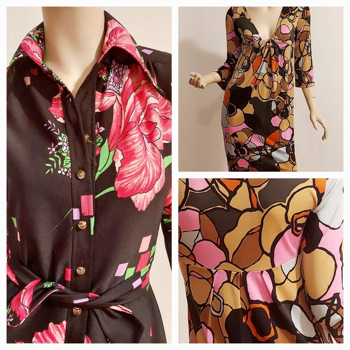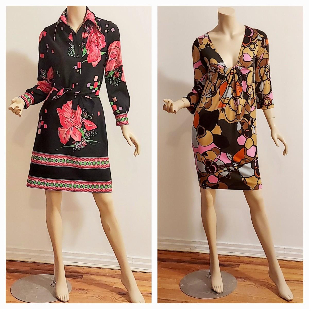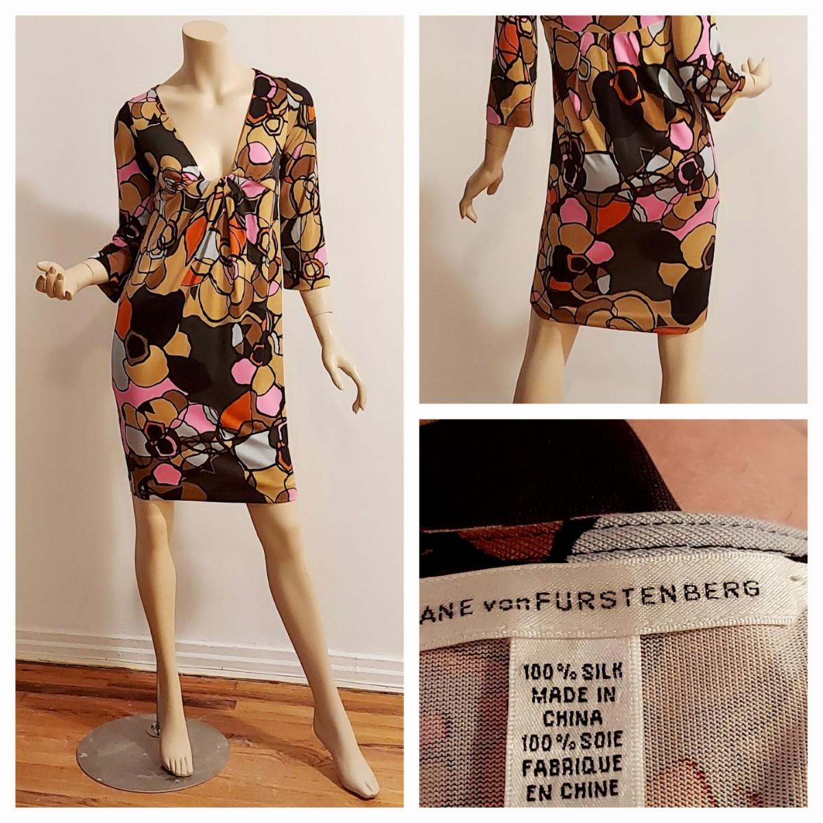1st: Diane von Furstenberg 100% Silk Sheath Retro/Bold color Circa 1990s deep V Empire waist with front Gathering. Although the size says -2 it is more of a roomy size M