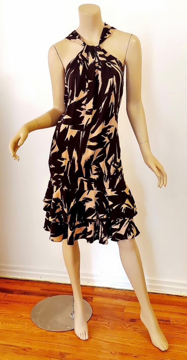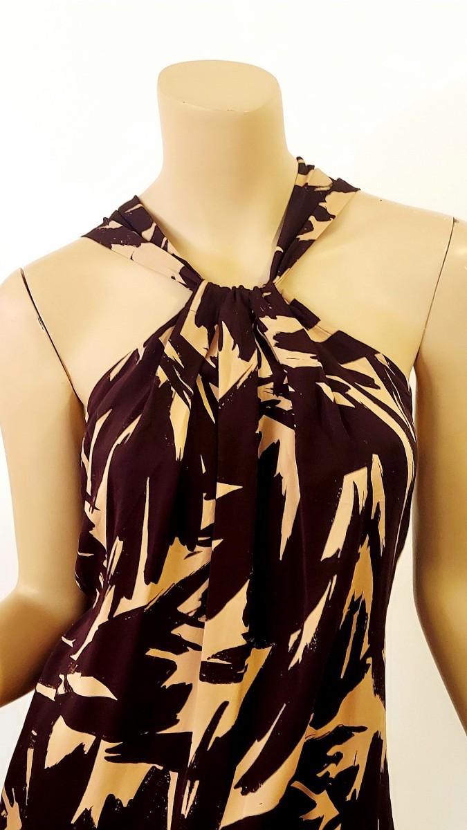 A Stunner by DVF Batik Print Swing Layered Bottom Halter with Back detailed Neckline ,