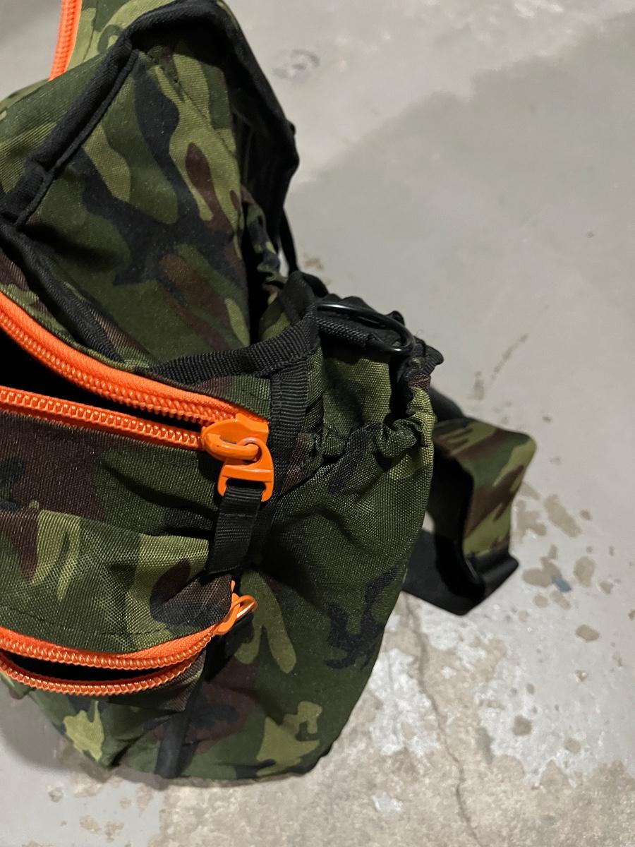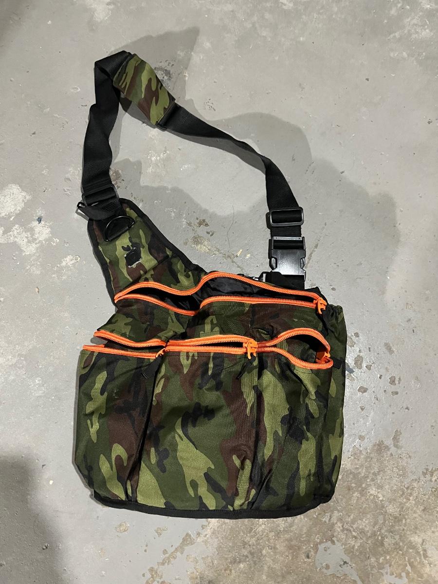 The bag has a comfortable, hands-free, across-the-chest design with a padded back.
