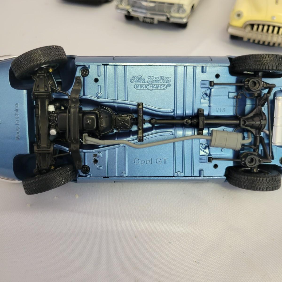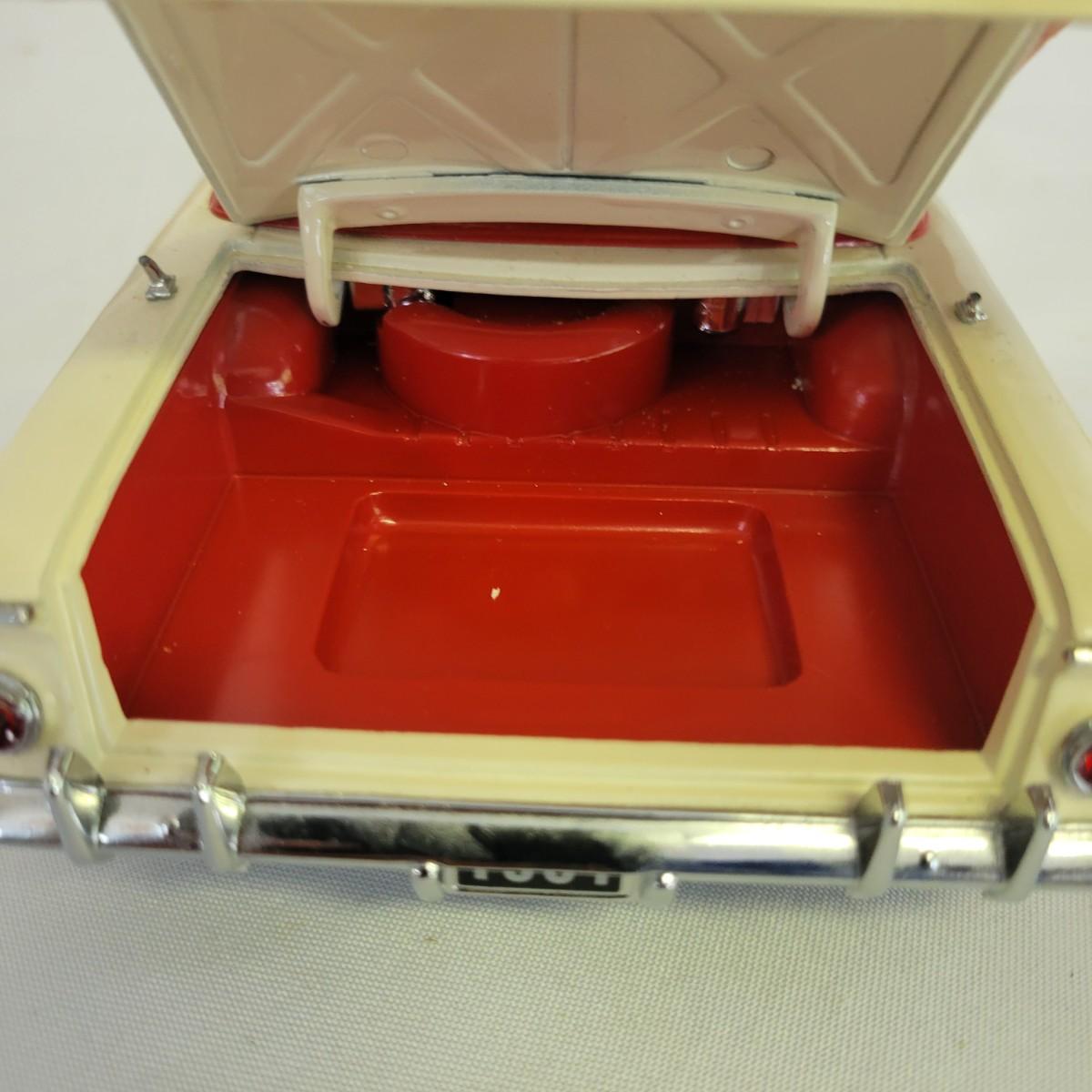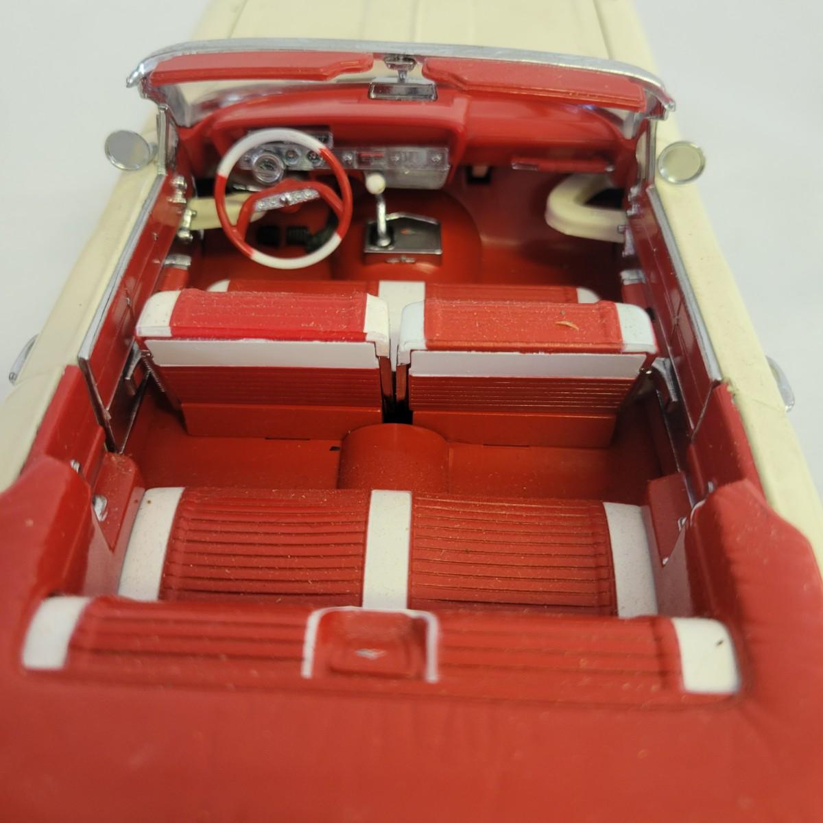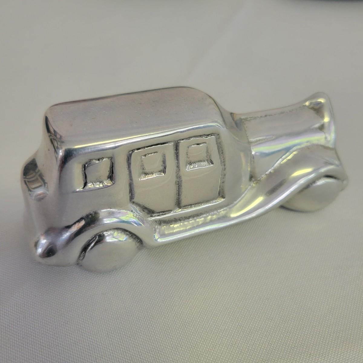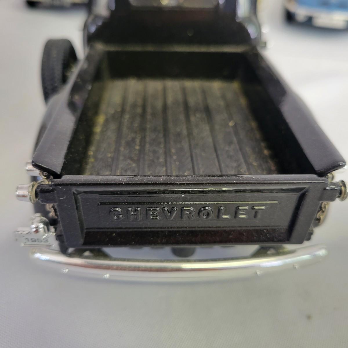 An assortment of six die cast cars and two metal molded cars. It appears most of the cars are 1/18 scale replicas of Chevrolets, Oldsmobile and Saab. The black Chevy truck has a broken side mirror and the beige convertible has a broken steering wheel. Most of the replicas have doors, hoods and trunks that open to show detail. This lot also includes two metal molded cars. One is solid brass and the other appears to aluminum. The largest beige convertible measures approximately 11" x 4.5" x 3.5"H. Shipping available. Shipping can be costly. We suggest contacting our preferred local shipping provider, Postage Express, with dimensions and getting an estimate before bidding: (828) 670-5501 or postageexpress@yahoo.com.