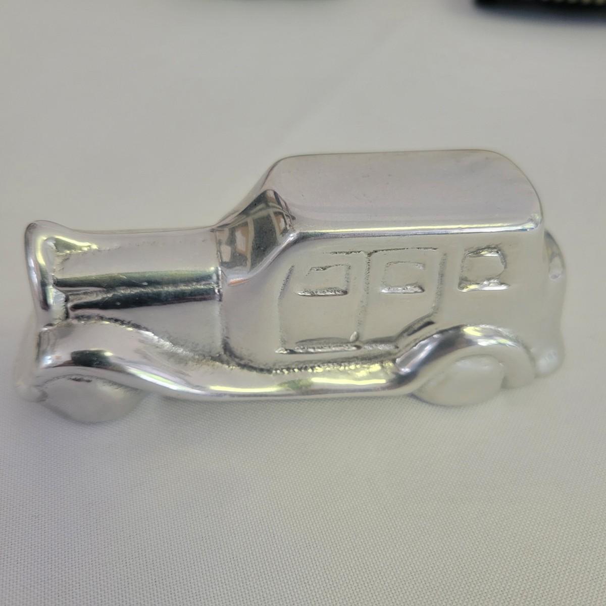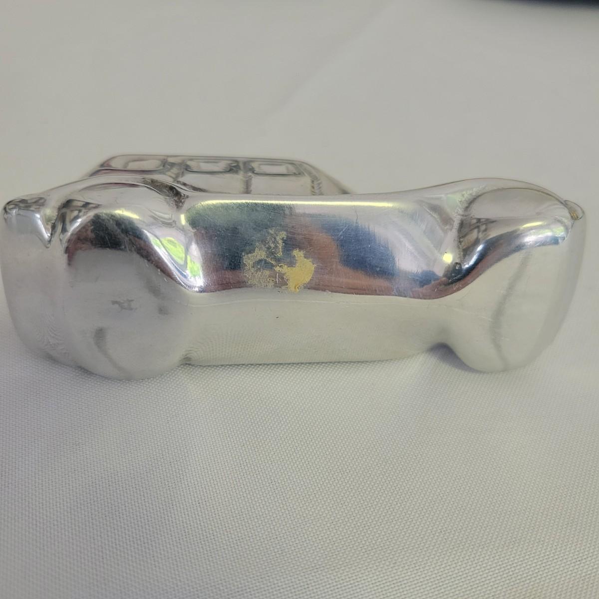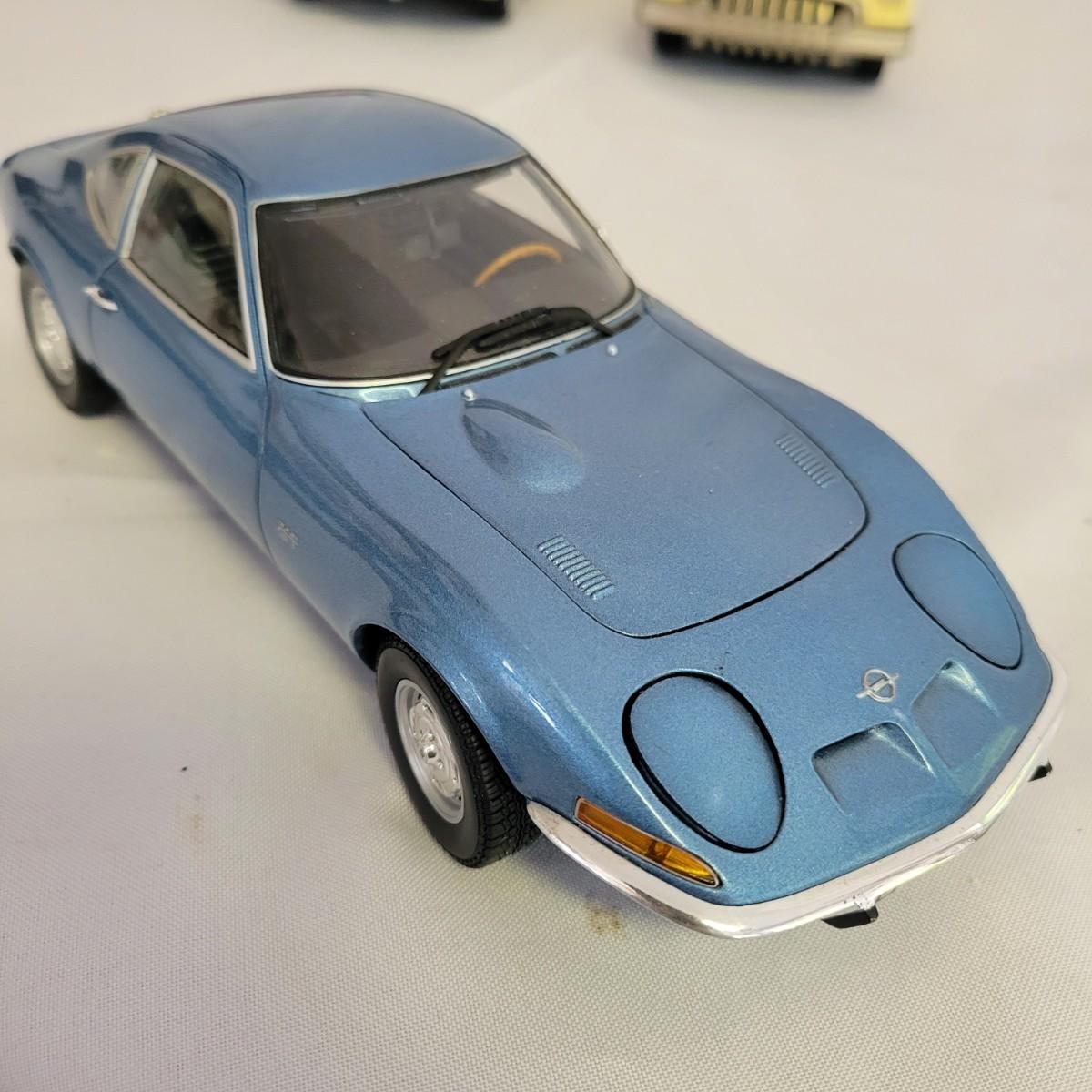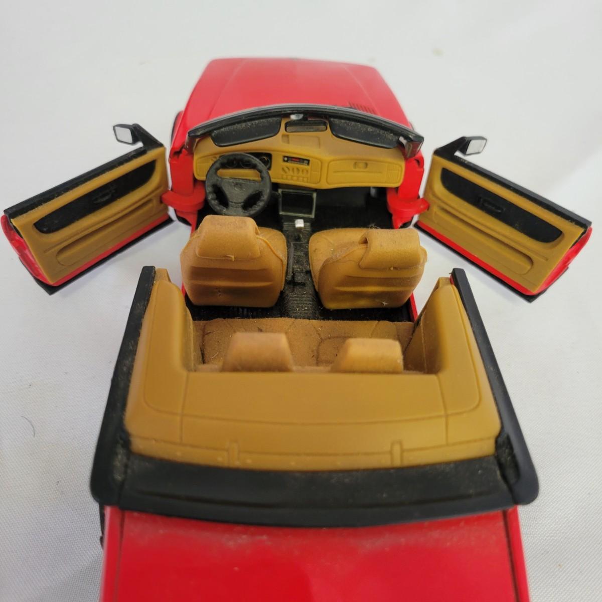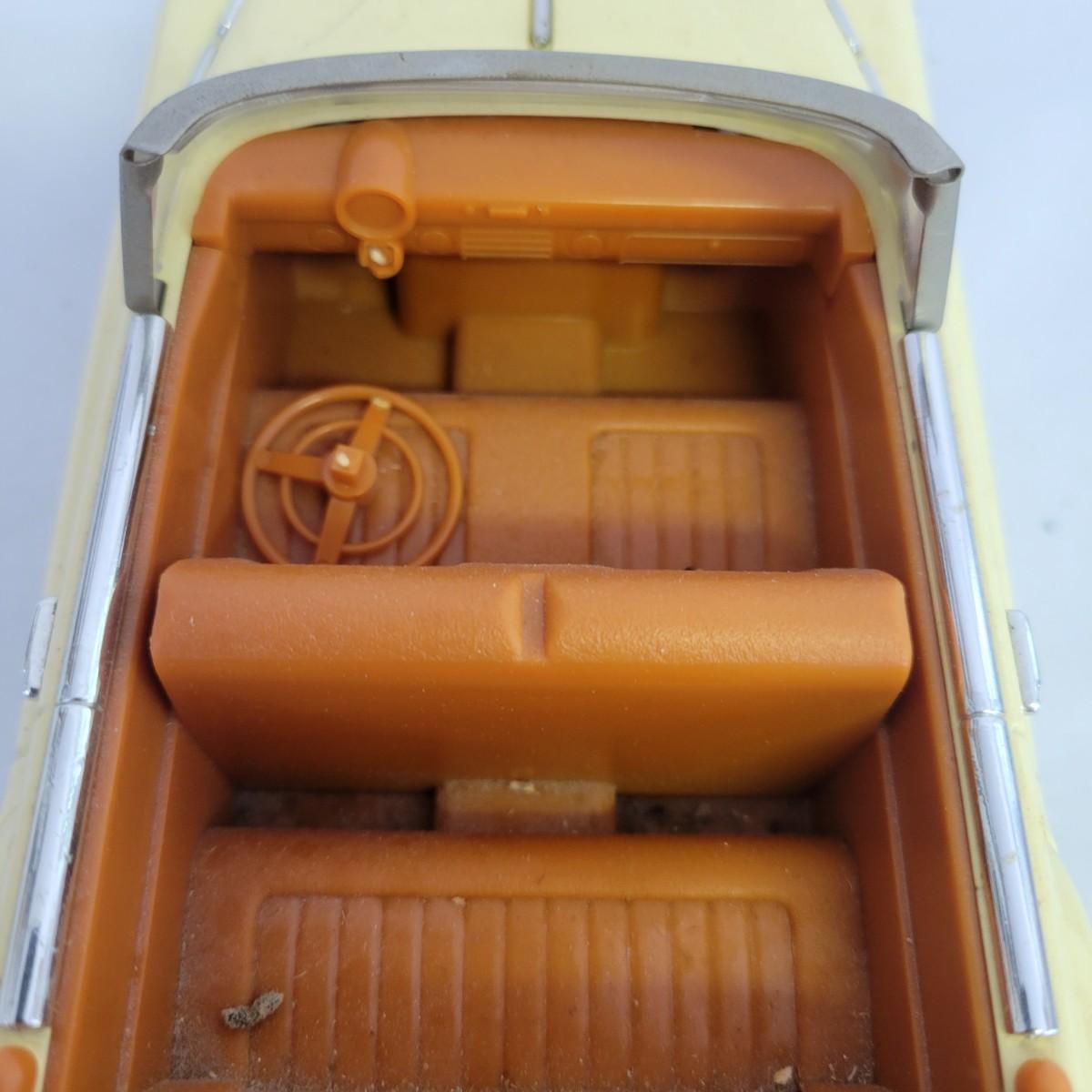 An assortment of six die cast cars and two metal molded cars. It appears most of the cars are 1/18 scale replicas of Chevrolets, Oldsmobile and Saab. The black Chevy truck has a broken side mirror and the beige convertible has a broken steering wheel. Most of the replicas have doors, hoods and trunks that open to show detail. This lot also includes two metal molded cars. One is solid brass and the other appears to aluminum. The largest beige convertible measures approximately 11" x 4.5" x 3.5"H. Shipping available. Shipping can be costly. We suggest contacting our preferred local shipping provider, Postage Express, with dimensions and getting an estimate before bidding: (828) 670-5501 or postageexpress@yahoo.com.