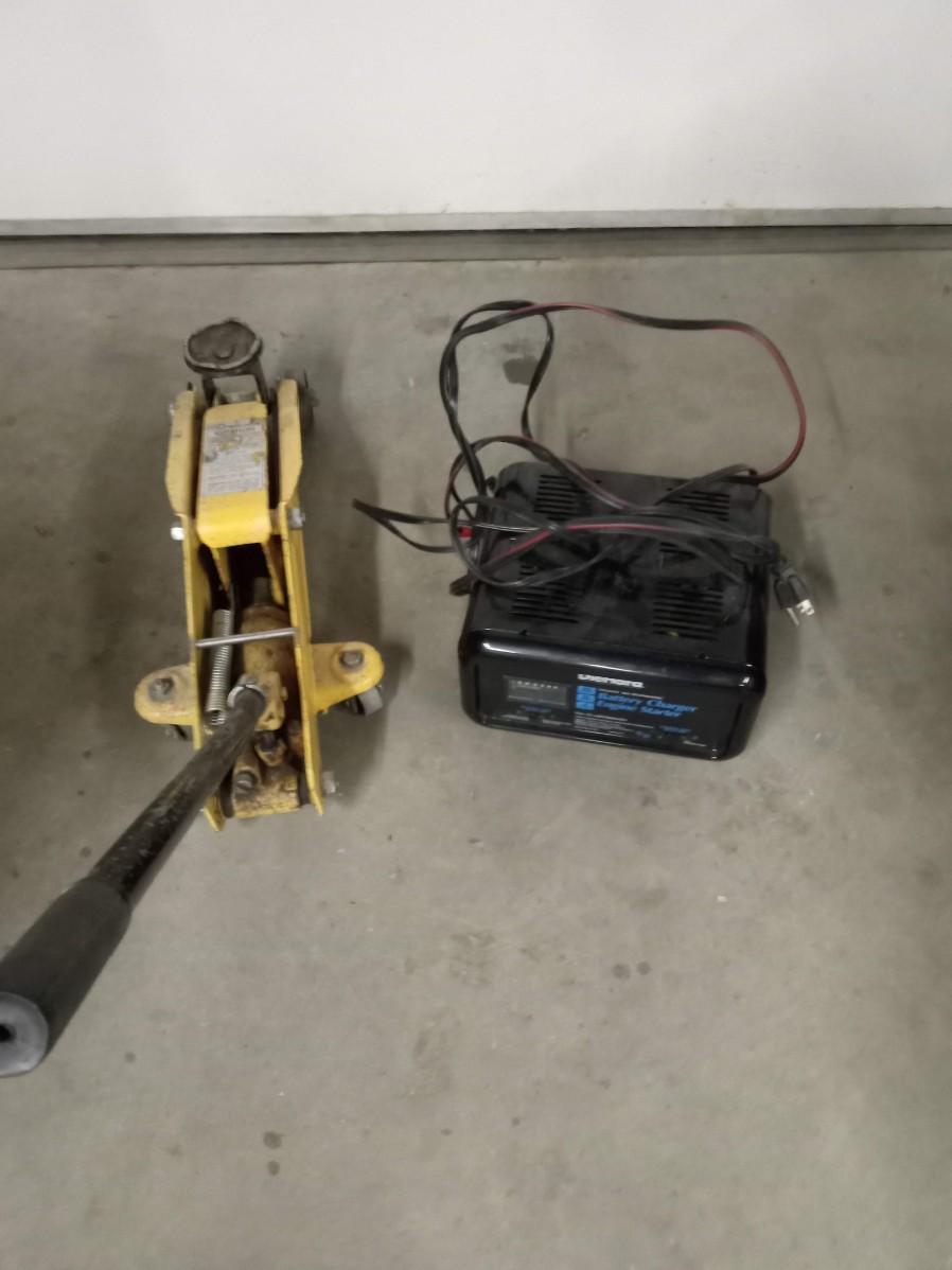 DIE HARD BATTERY CHARGER AND HYDRAULIC FLOOR JACK