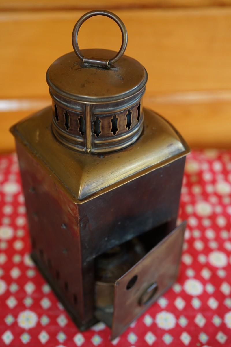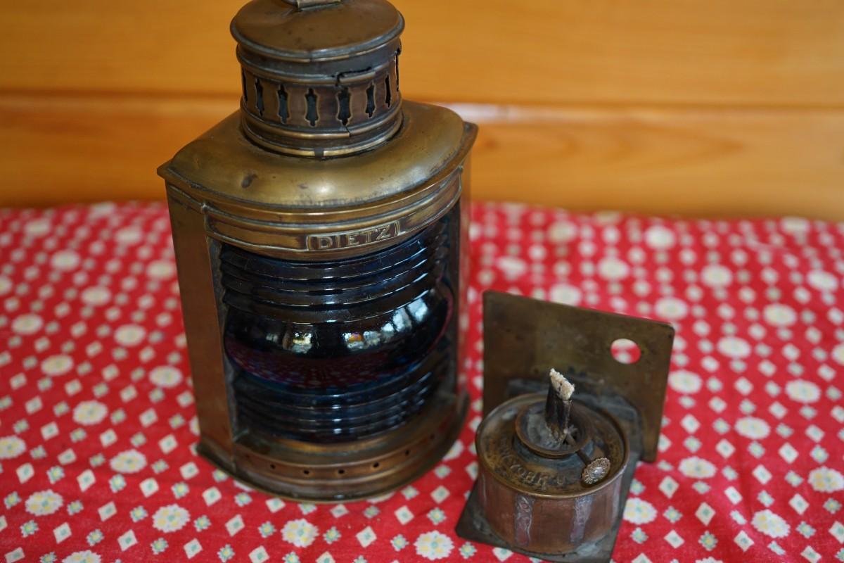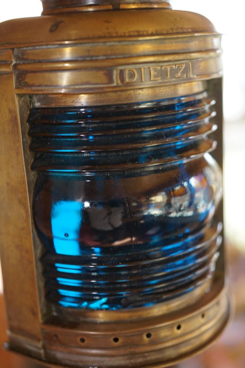 DIETZ BRASS MARI TIME LANTERN W/ ORIGINAL BLUE RIBBED GLOBE