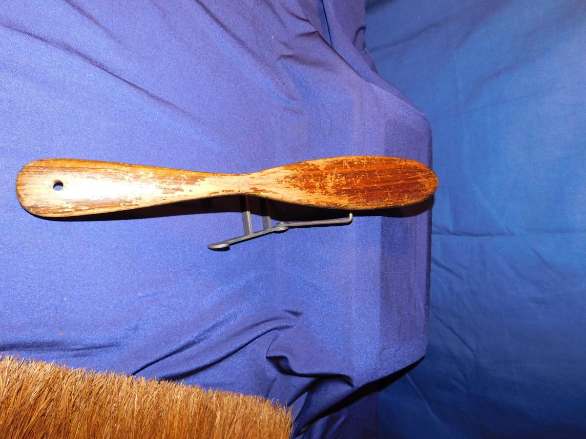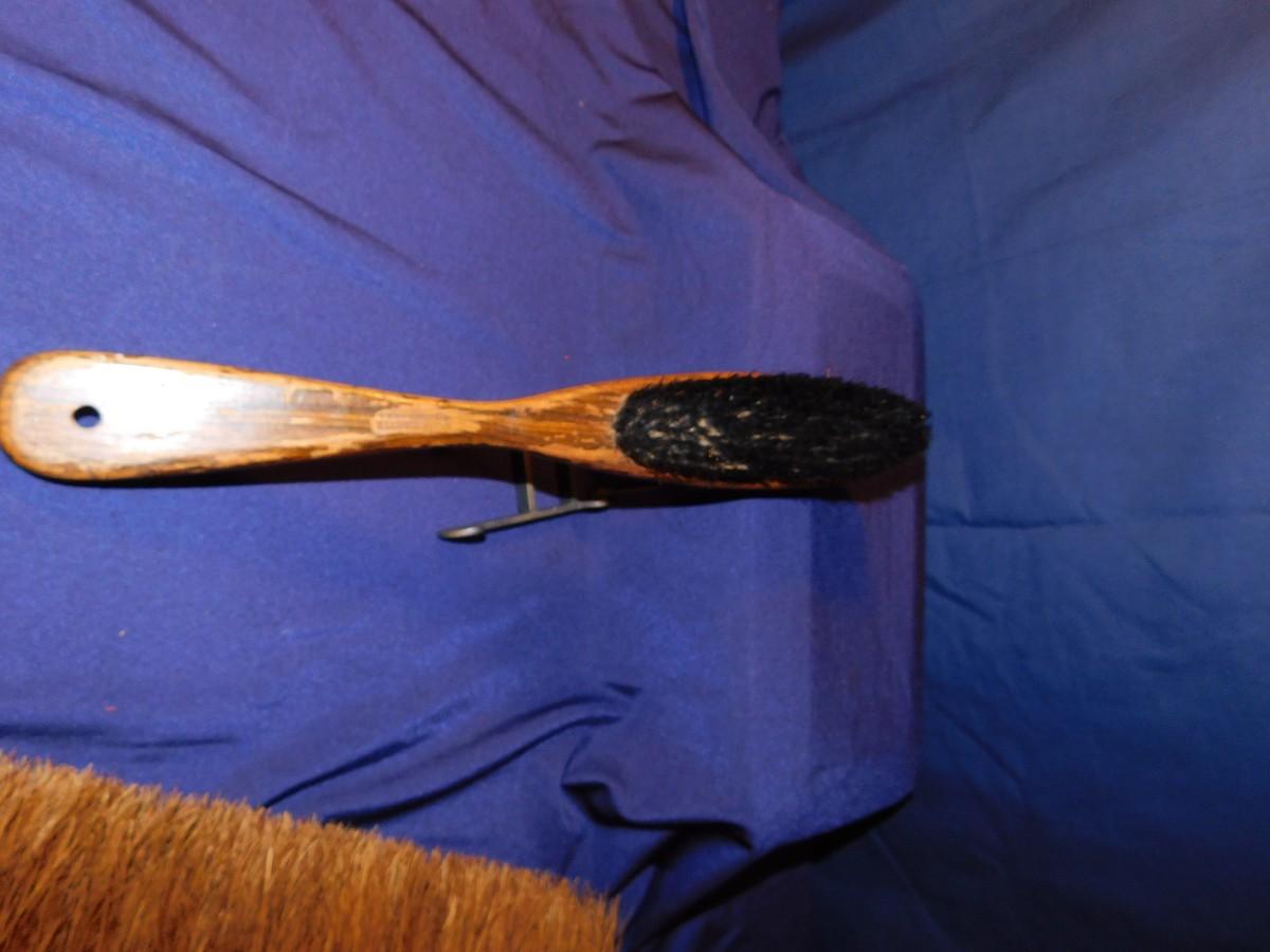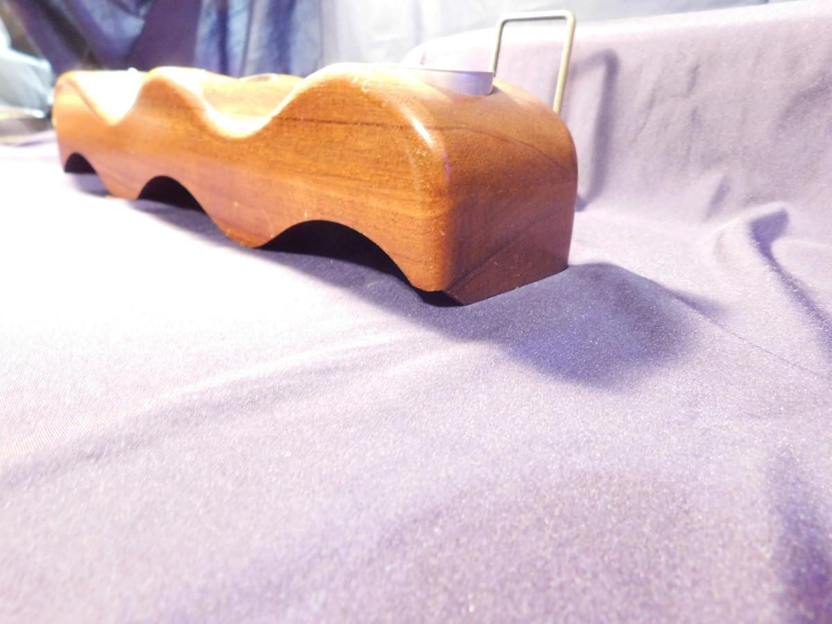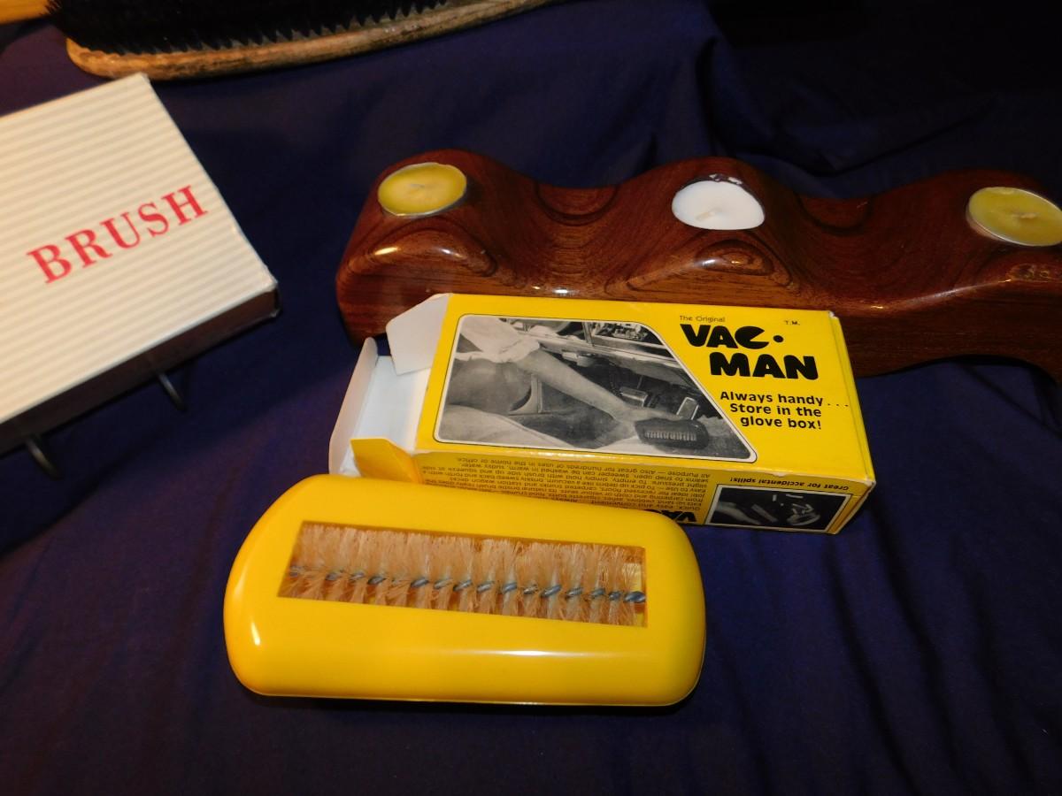 A HAT BRUSH AND A CANDLE HOLDER MADE OUT OF ORANGE WOOD