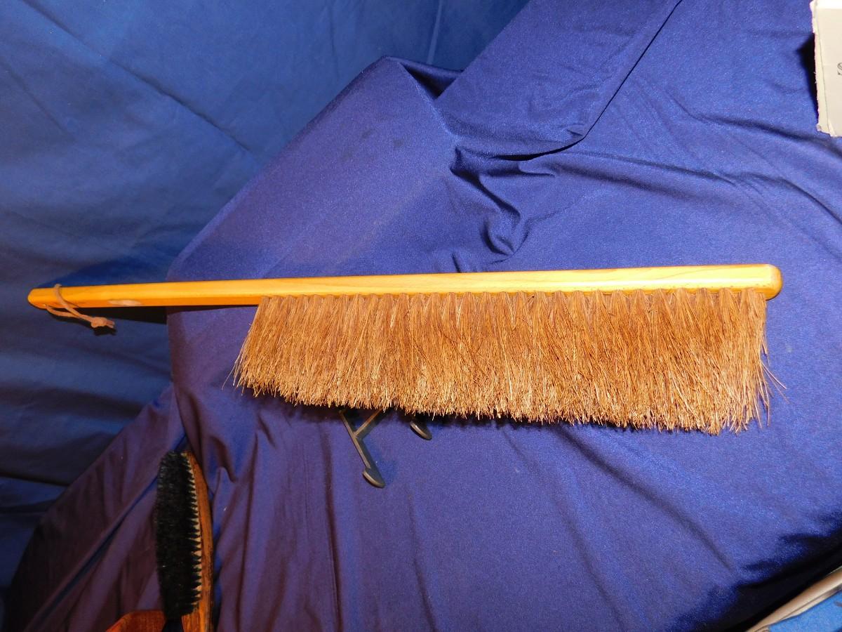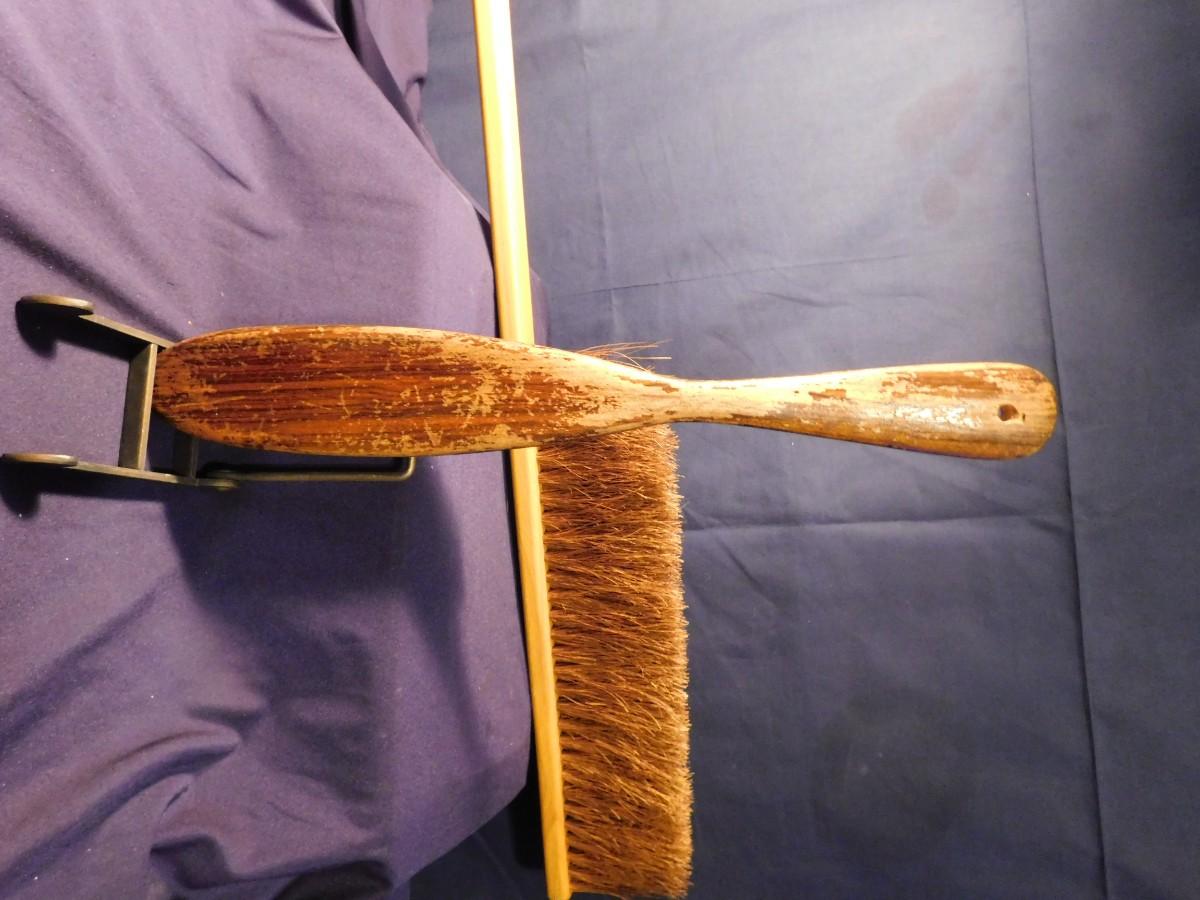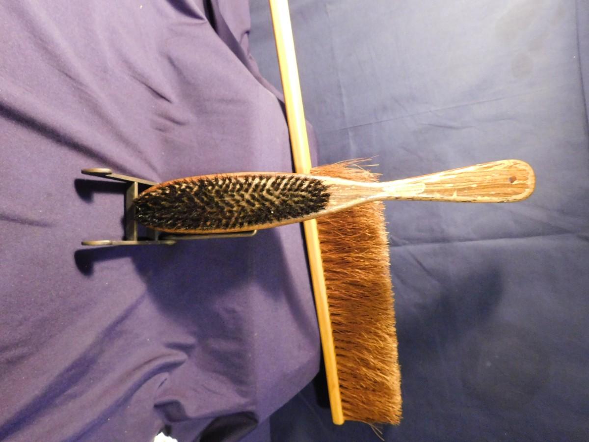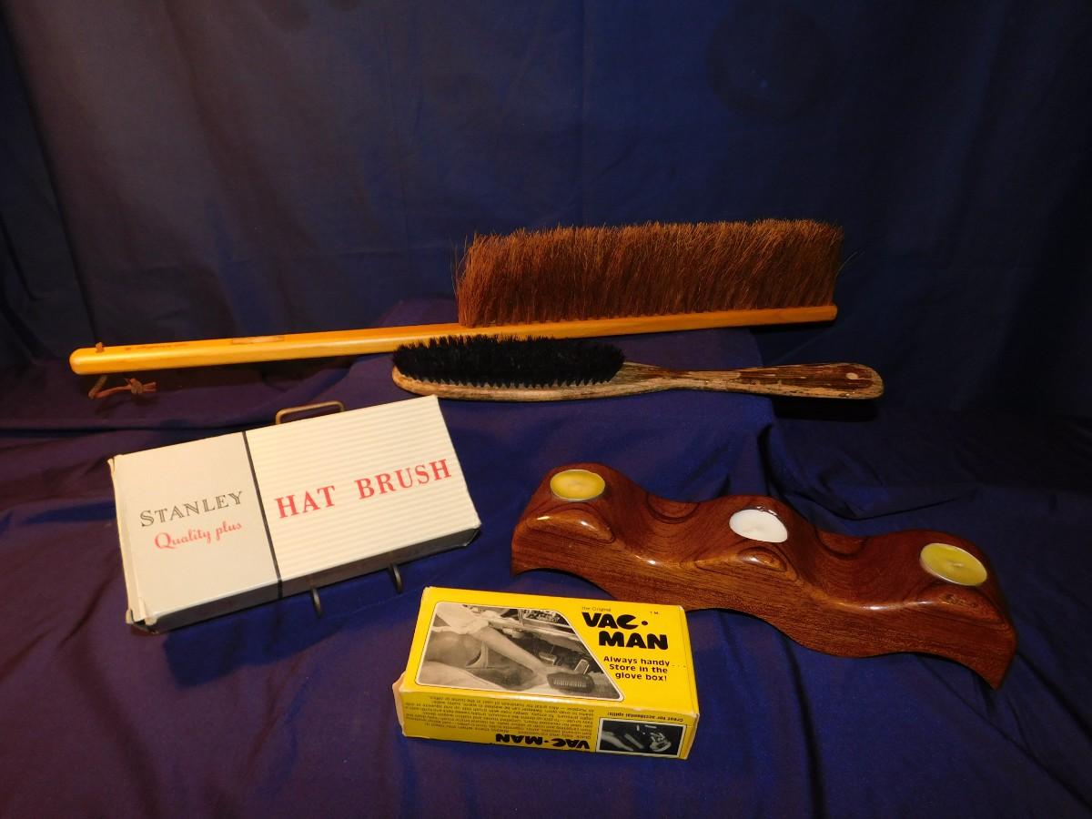 A HAT BRUSH AND A CANDLE HOLDER MADE OUT OF ORANGE WOOD