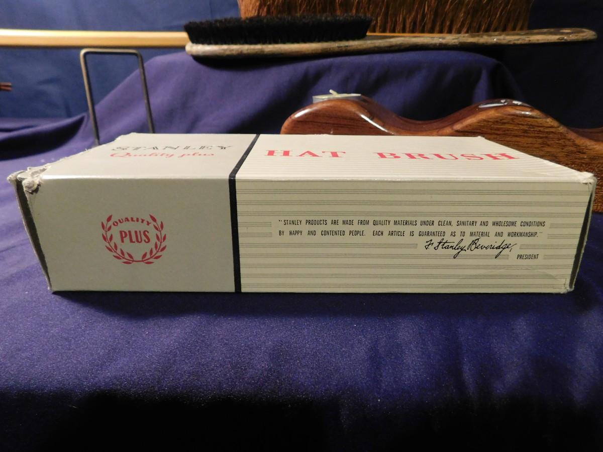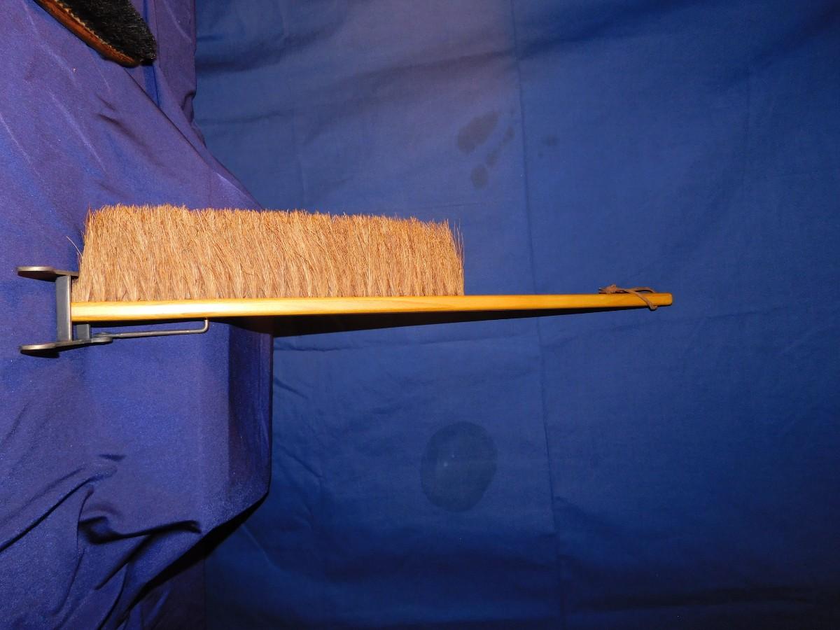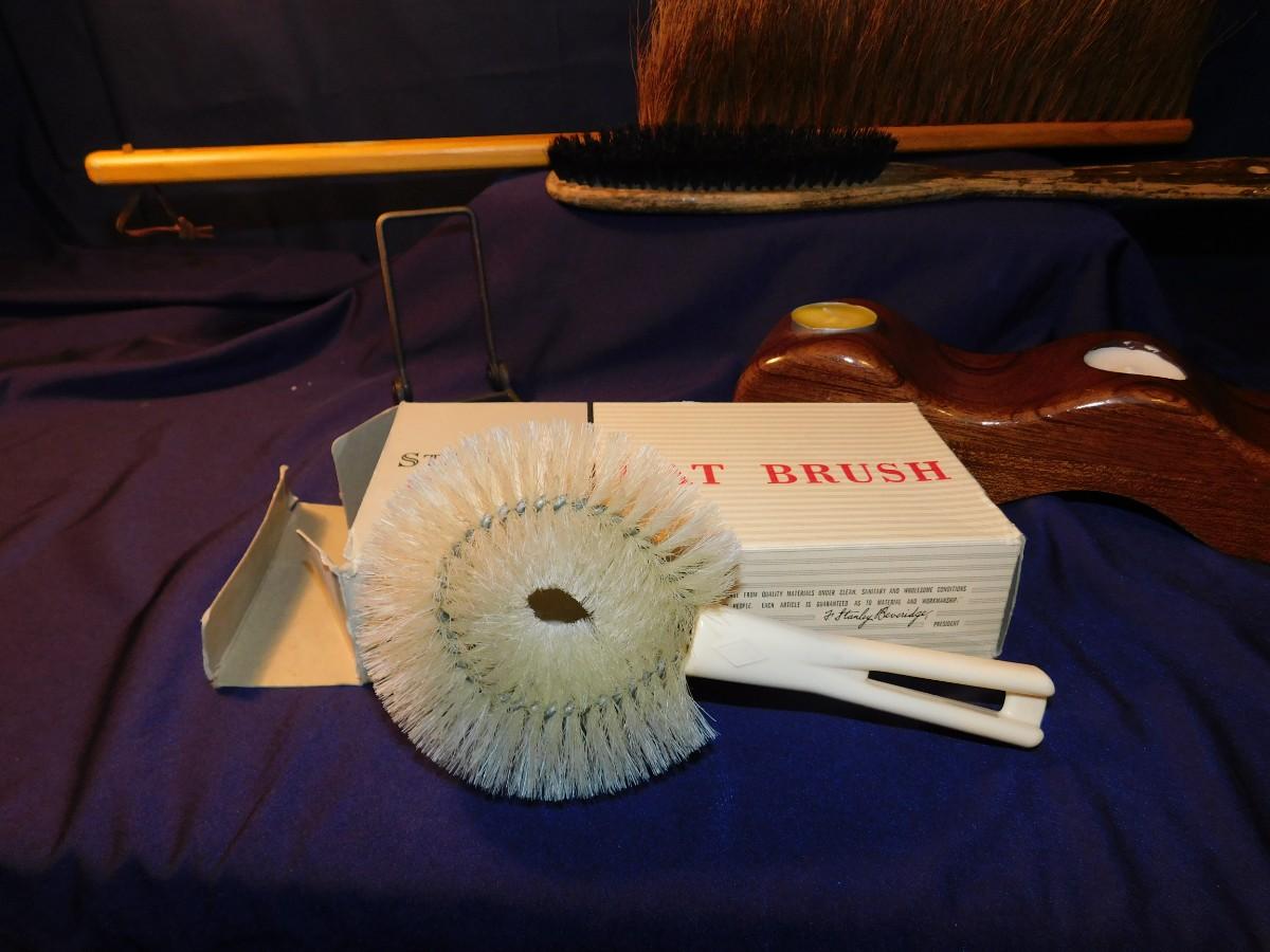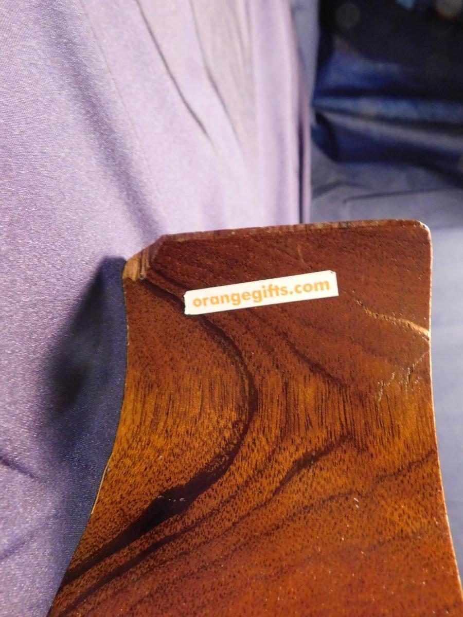 A HAT BRUSH AND A CANDLE HOLDER MADE OUT OF ORANGE WOOD
