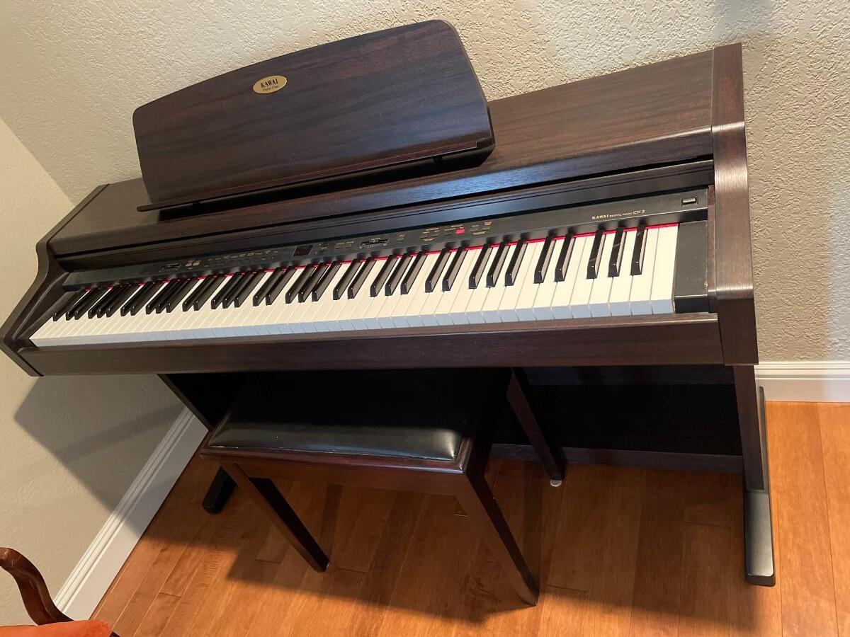 Kawai Digital Piano CN3 - Rosewood, 2-track recorder & MIDI interface. Mahagony finish. Worn bench top. Piano size 55x18x33