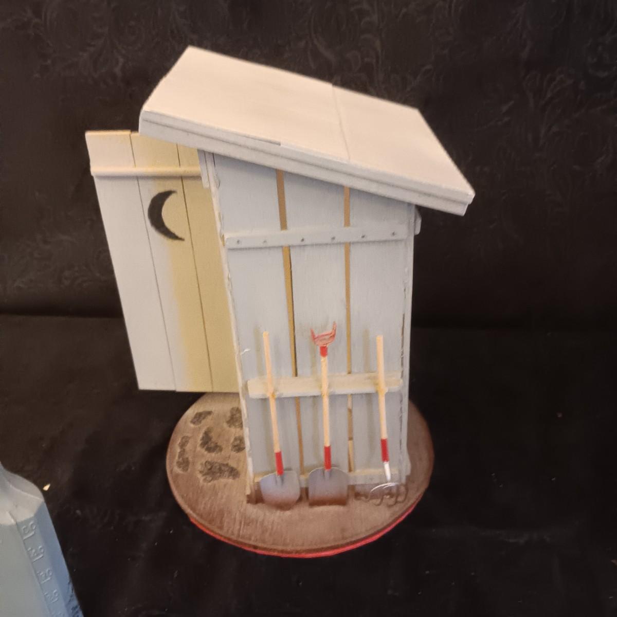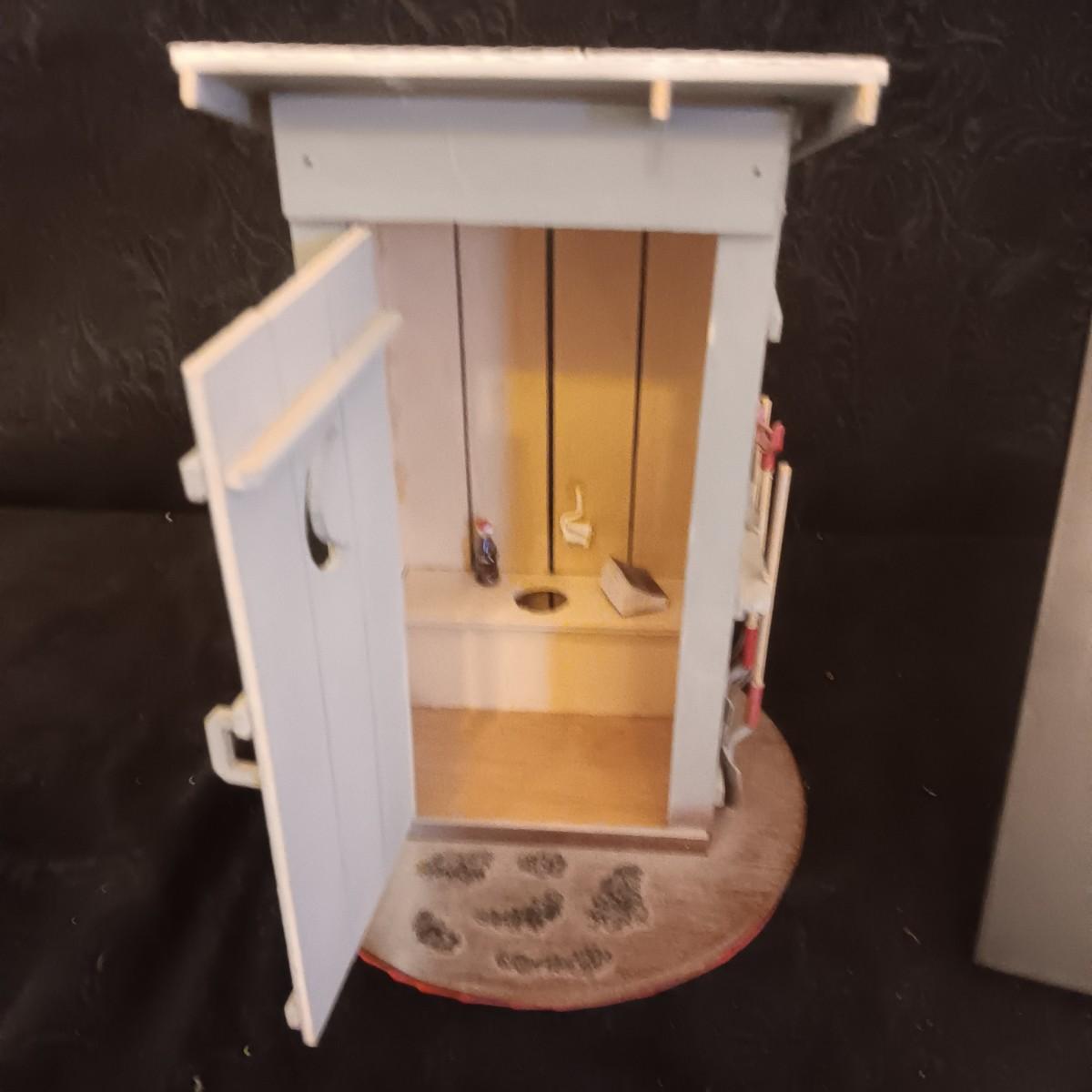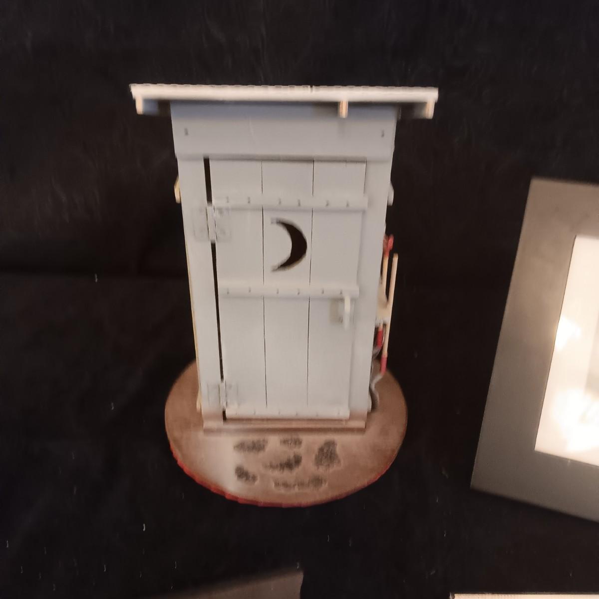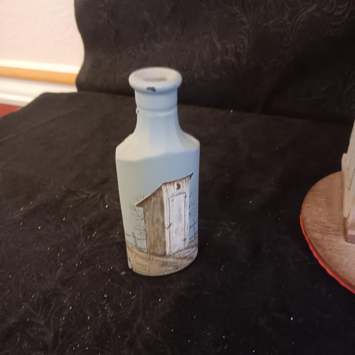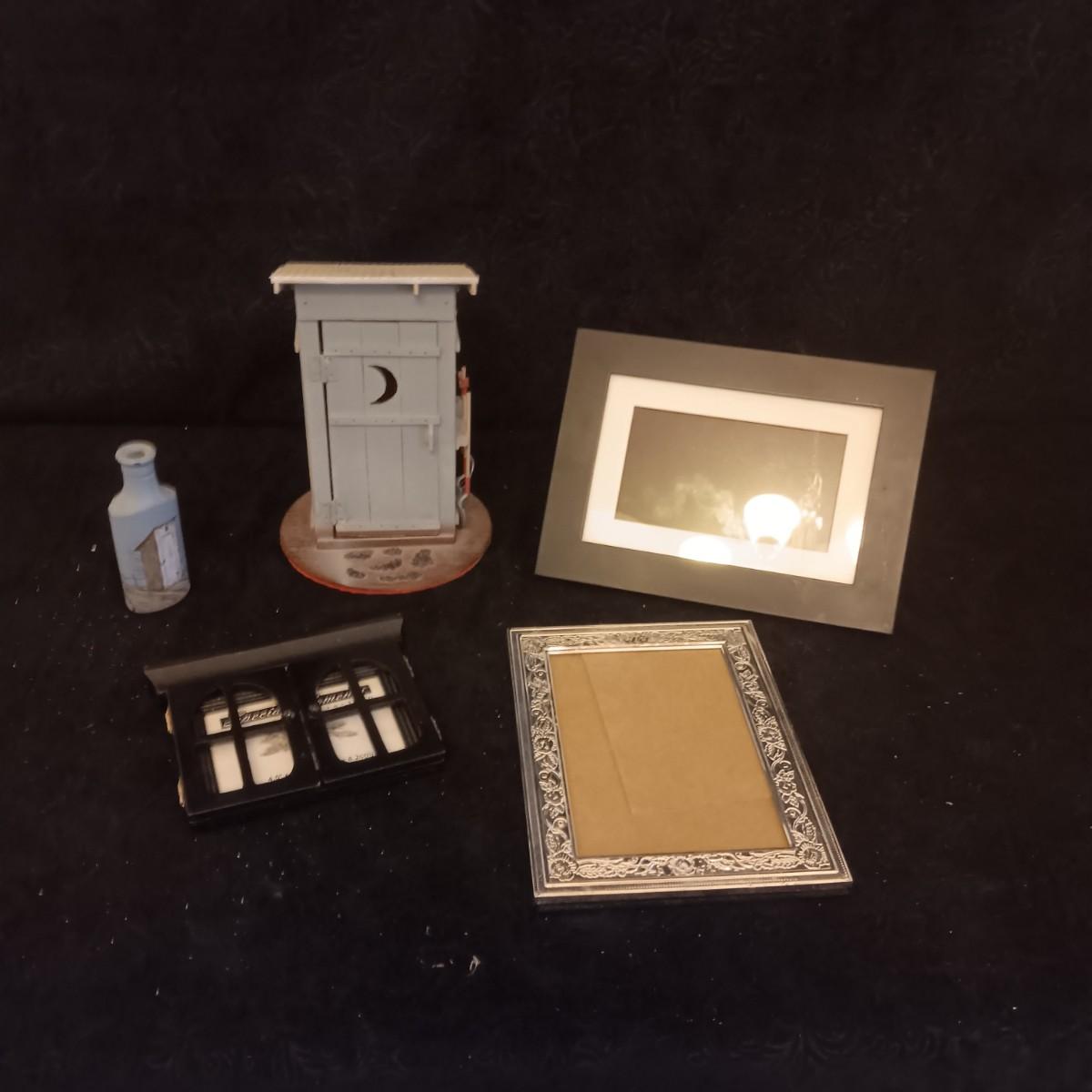 DIGITAL PICTURE FRAME, PAINTED OLD GLASS BOTTLE, DECORATIVE OUTHOUSE