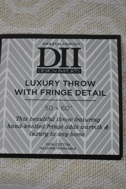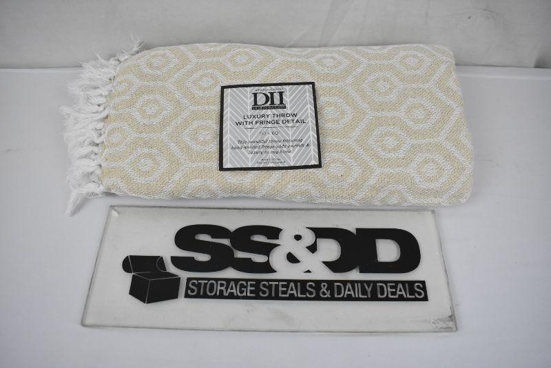 DII Hexagon Decorative Throw, 50"x60", 100% Cotton, Tan & Cream w/ Fringe - New