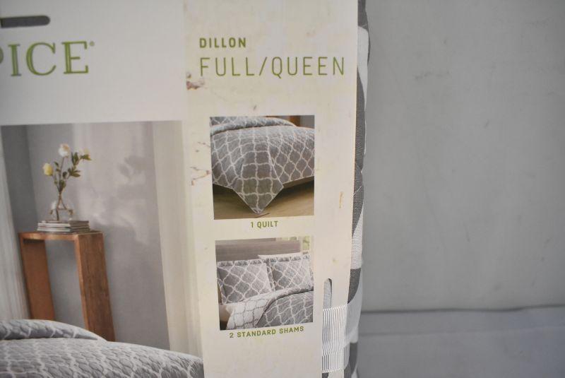 Dillon Grey Full/Queen Quilt Set: Includes Quilt and 2 Standard Shams - New