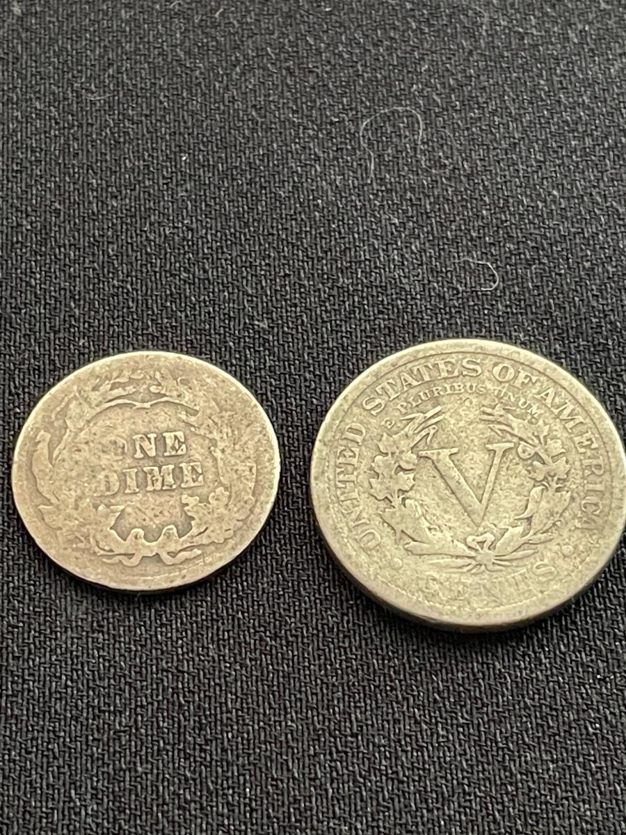 1913 BARBER DIME AND A 1906 LIBERTY HEAD NICKEL