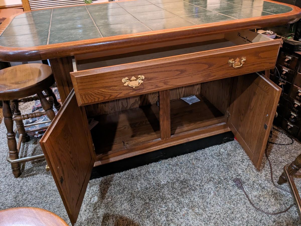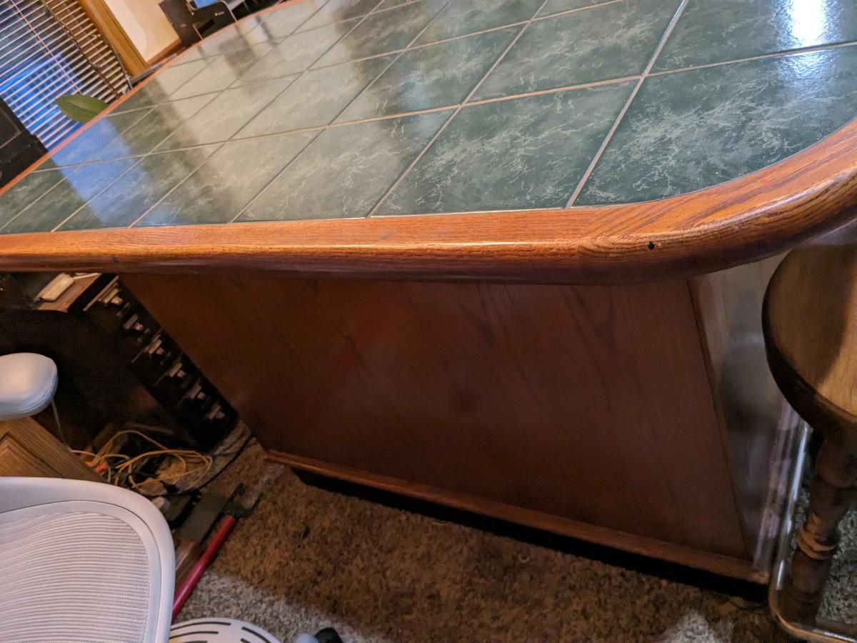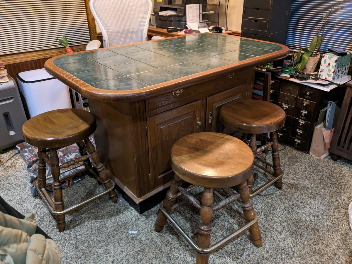 Dinaire Tile & Oak Top Bar/Game/Island w/ 4 Stools, 2 Captains Chairs