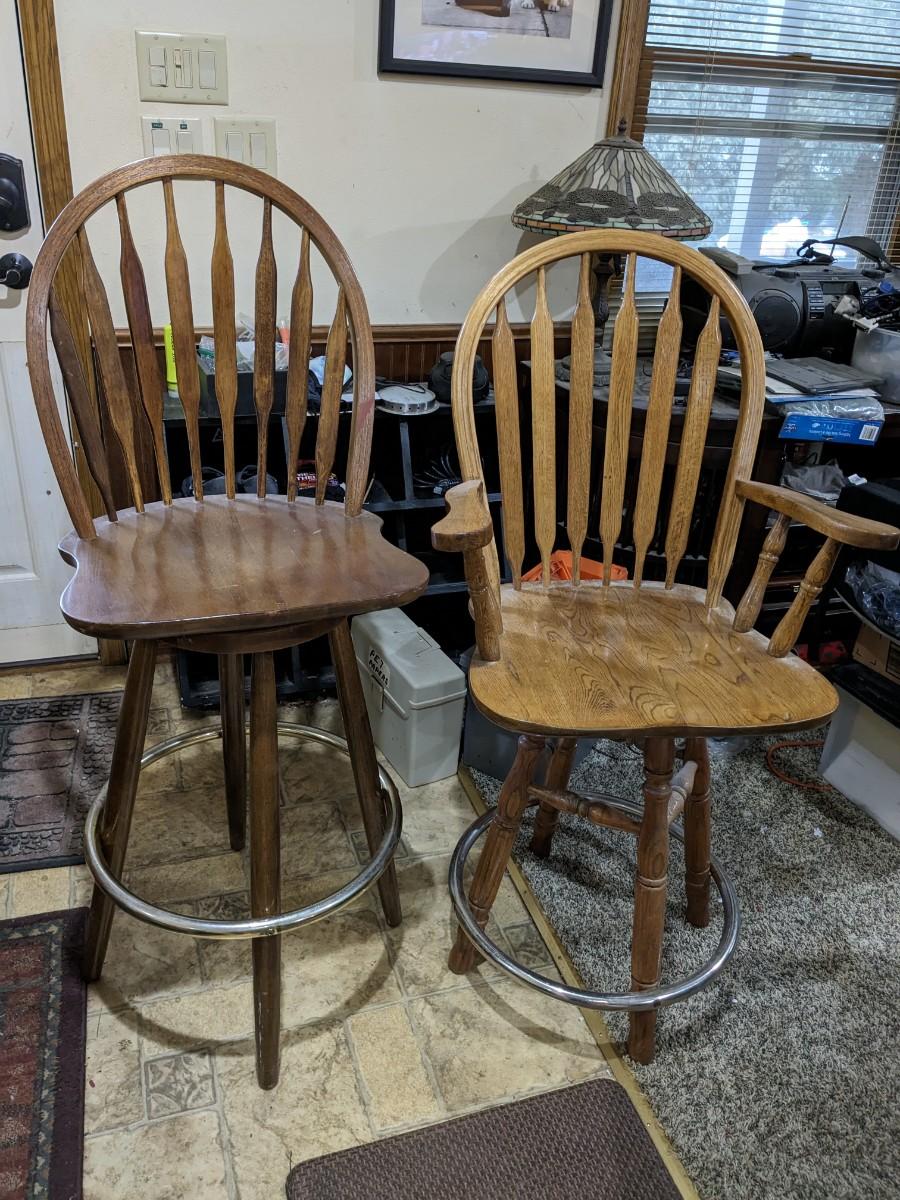 Additional stool and captains chairs (one does not completely match) are not shown in first photo, found later.