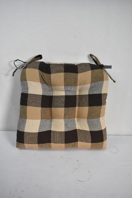 Dining Chair Seat Cushions, Brown Buffalo Plaid, Quantity 4 - New