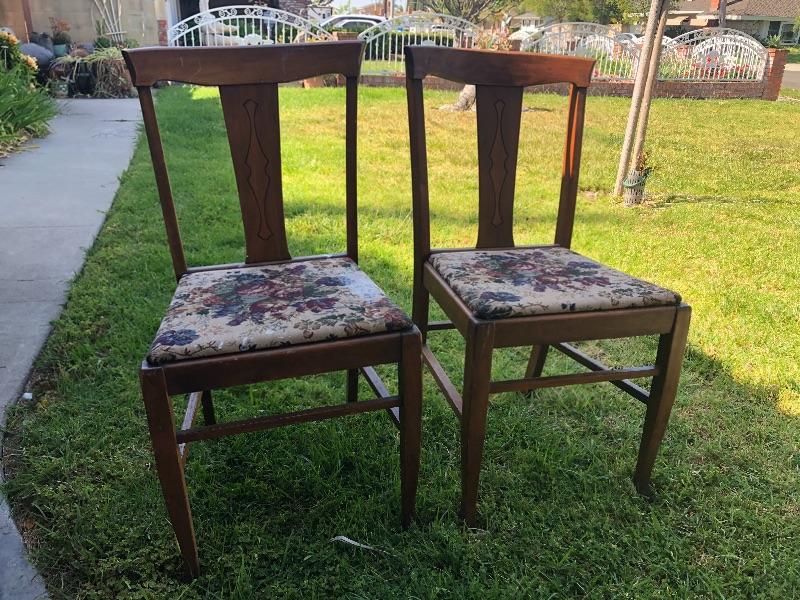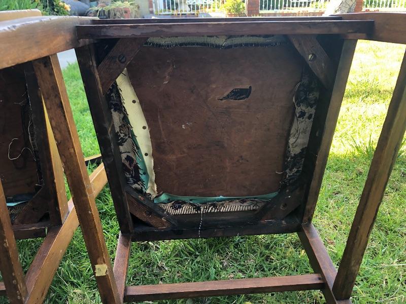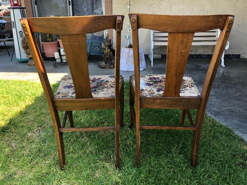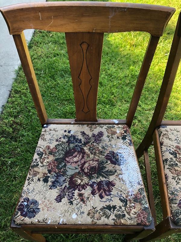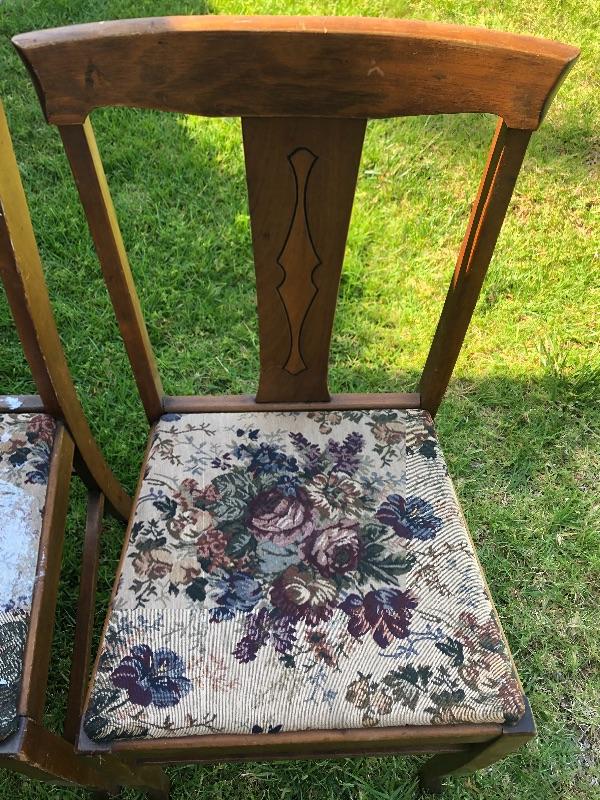2 Antique Vintage Dining chairs, wood, tapestry seats