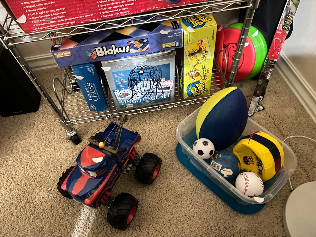 There is a large selection of toys and games in this Online sale. You are bidding on all the items in the photo. Everything in the photo is included except any displays and items used for sizing. We do not have time to measure individual items