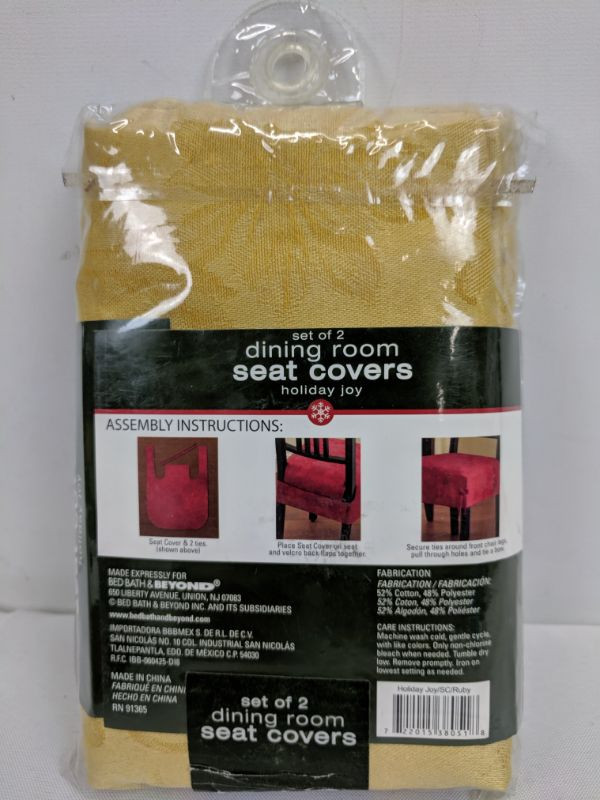 Dining Room Seat Covers, Set of 2, Gold/Yellow, Holiday, 28" x 36" - New
