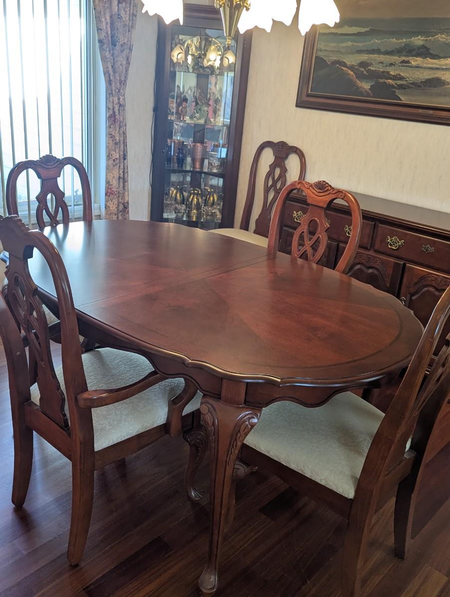 Dining Room Set With 6 Chairs & Leaf & Protective Cover