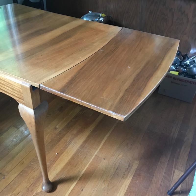 Lot includes dining room table with extending sides. 38” x 34.5” x 30”. Extended the top measures 62.5” See pic. No shipping available. Local pickup only in Hendersonville, NC.