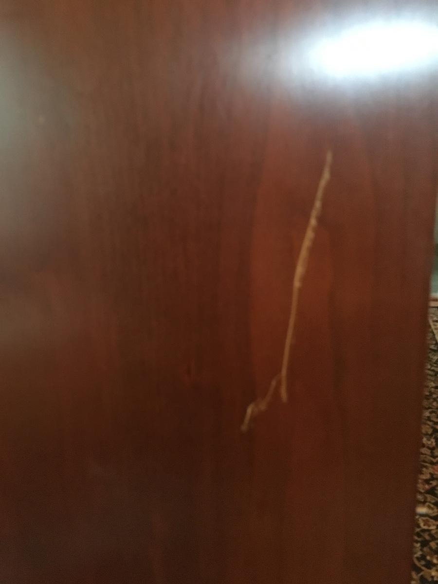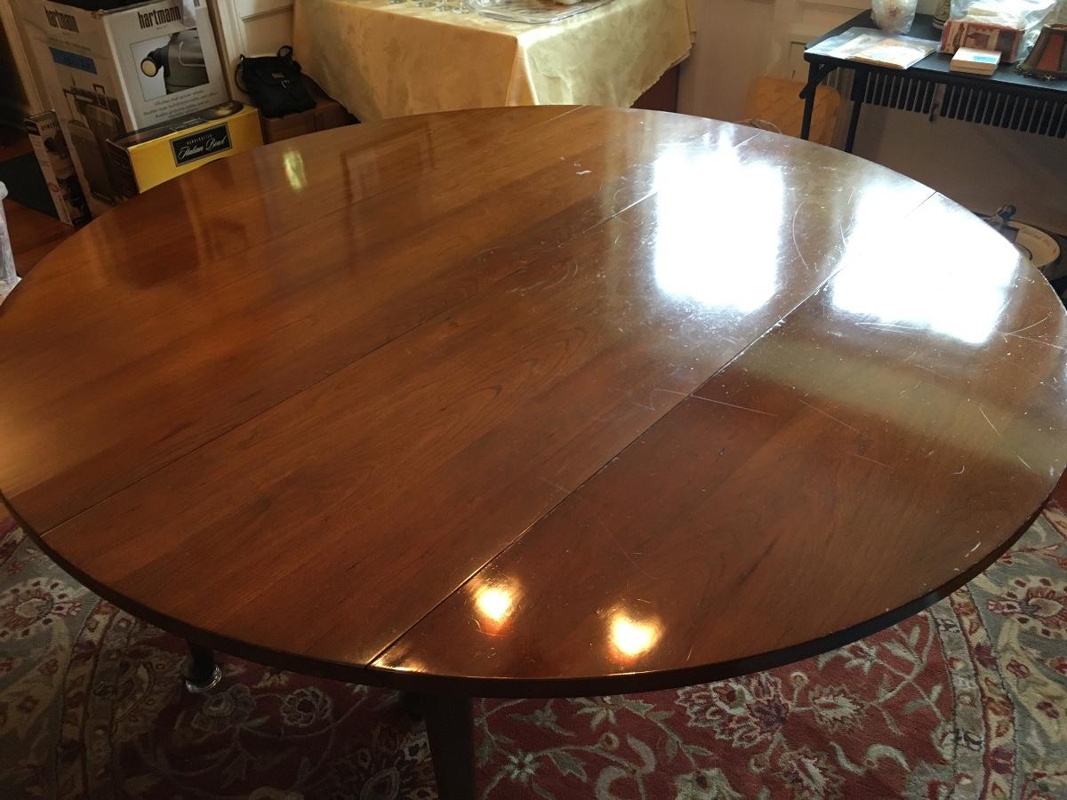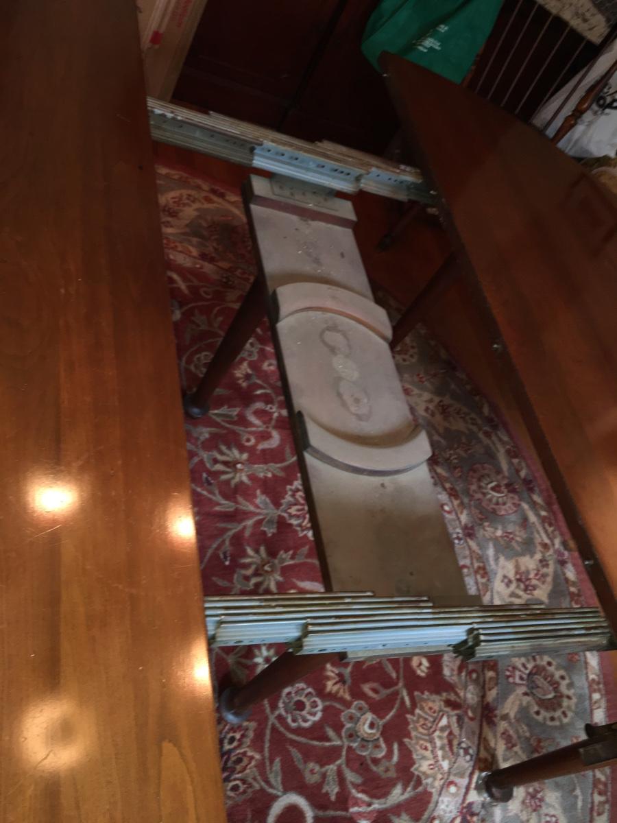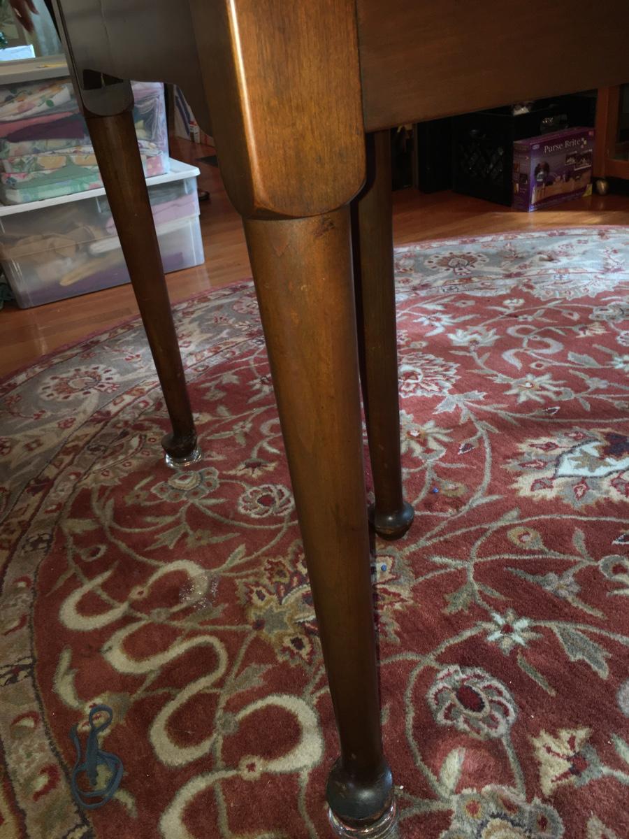 Comes with 3 additional 12” leaves, surfaces do not match as leaves were in storage. Sides easily go up and down.