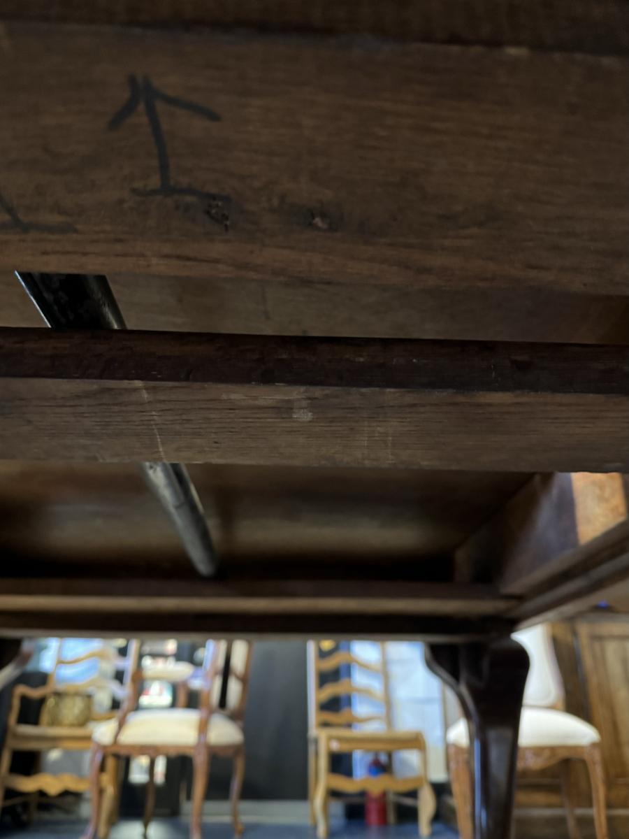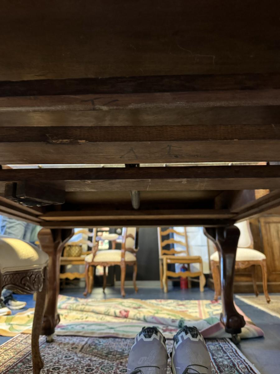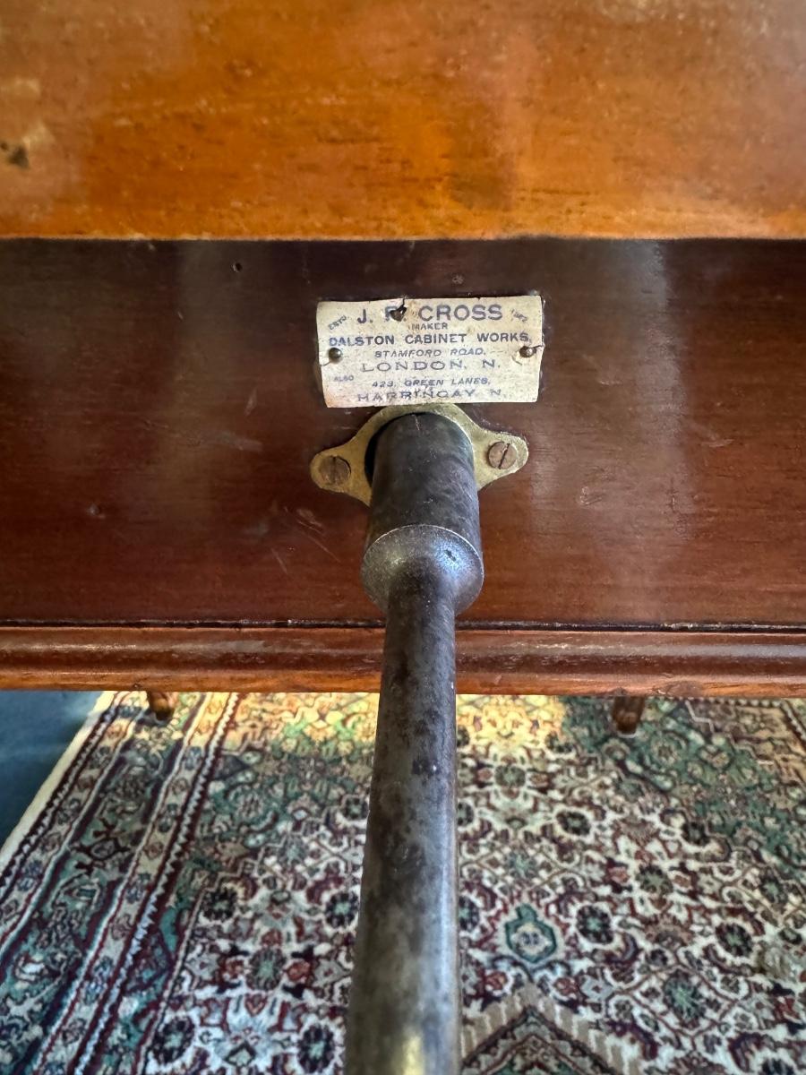 J R Cross ( London ) is the maker of this ball and claw foot table. This table cranks to open thus you don't need 2 people to add the leaves. It has 2 leaves and the original crank.