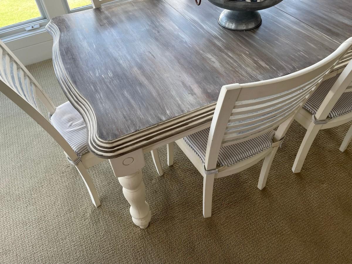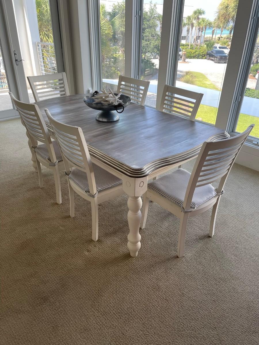 Dining room table farmhouse styled distressed finish w/ 6 chairs