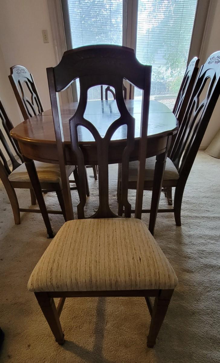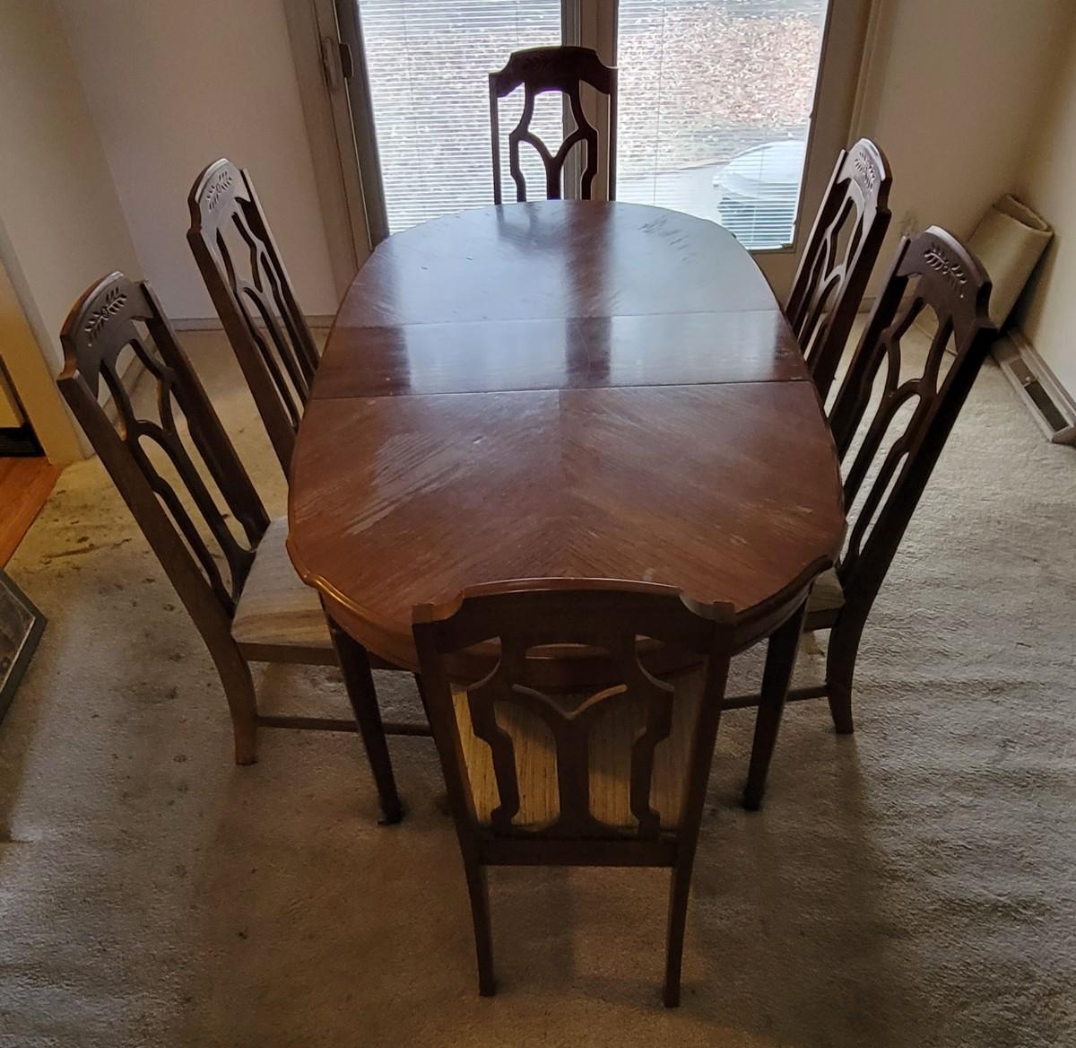Table has two center leafs and 6 chairs
