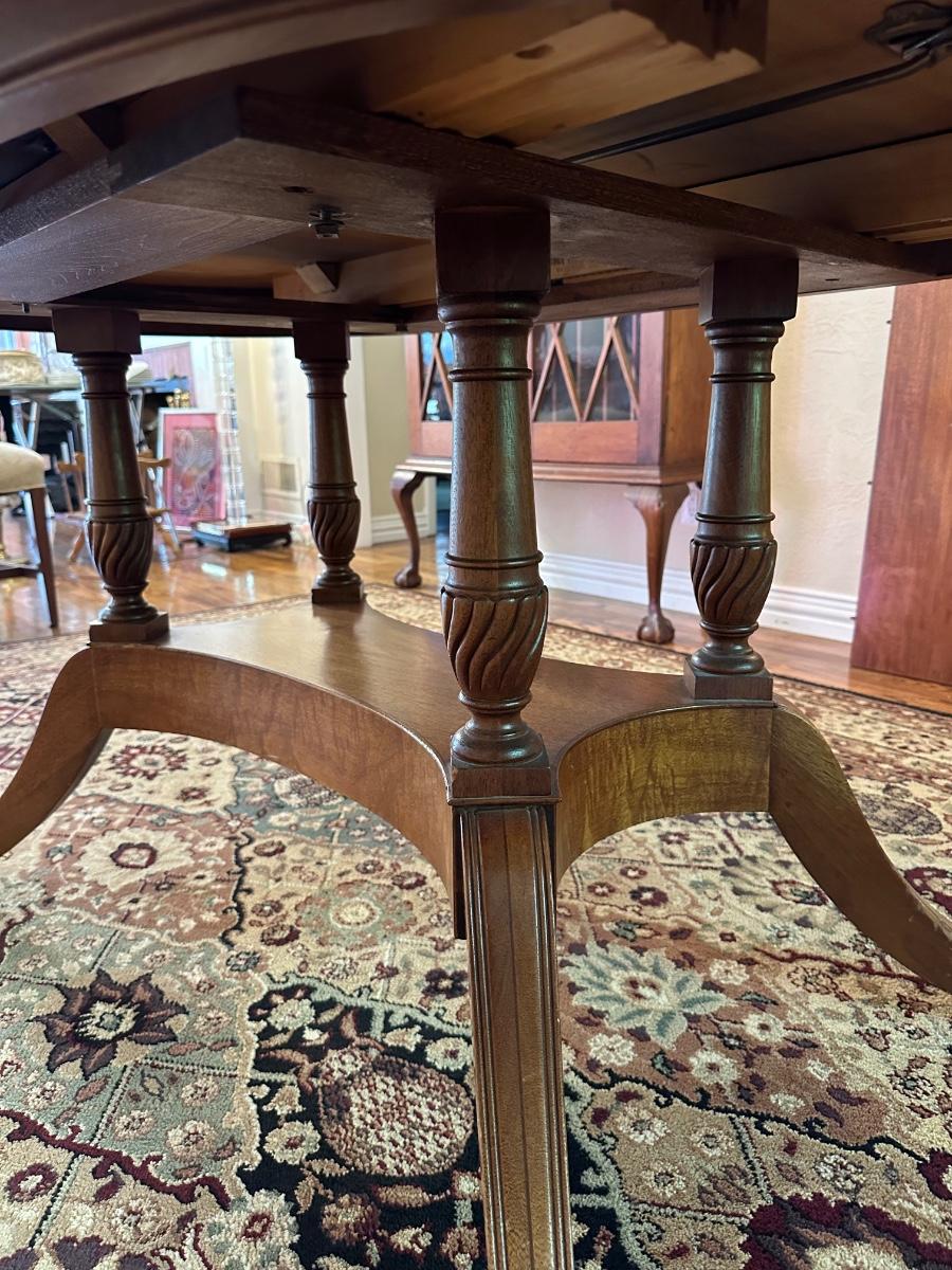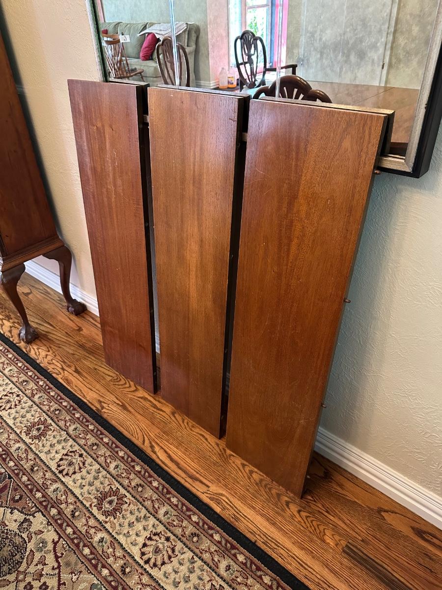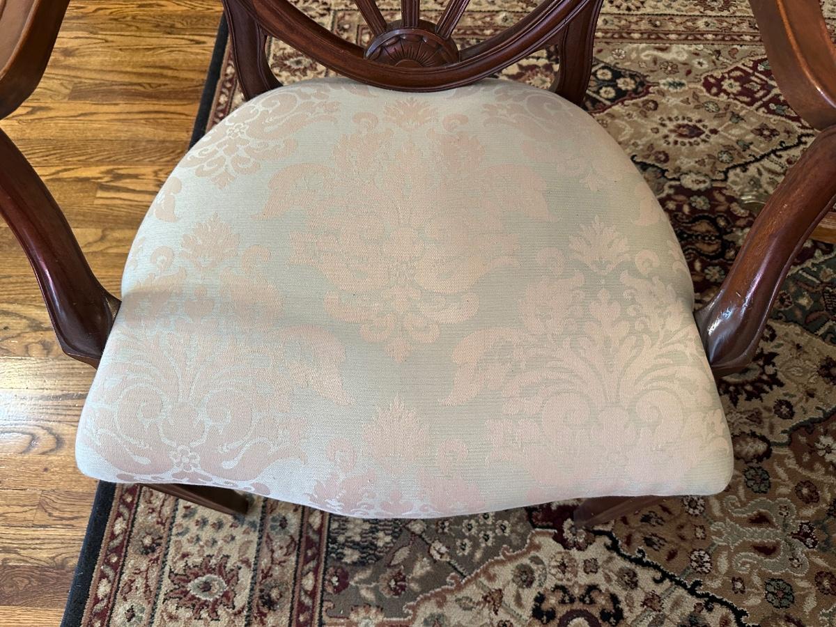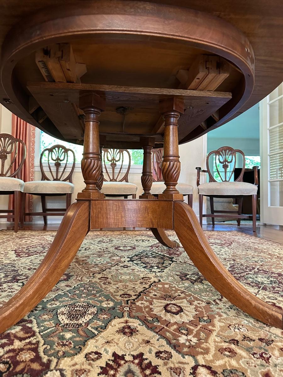 DINING ROOM TABLE WITH 2 ARM CHAIRS, 6 SIDE CHAIRS AND 3 TABLE LEAVES