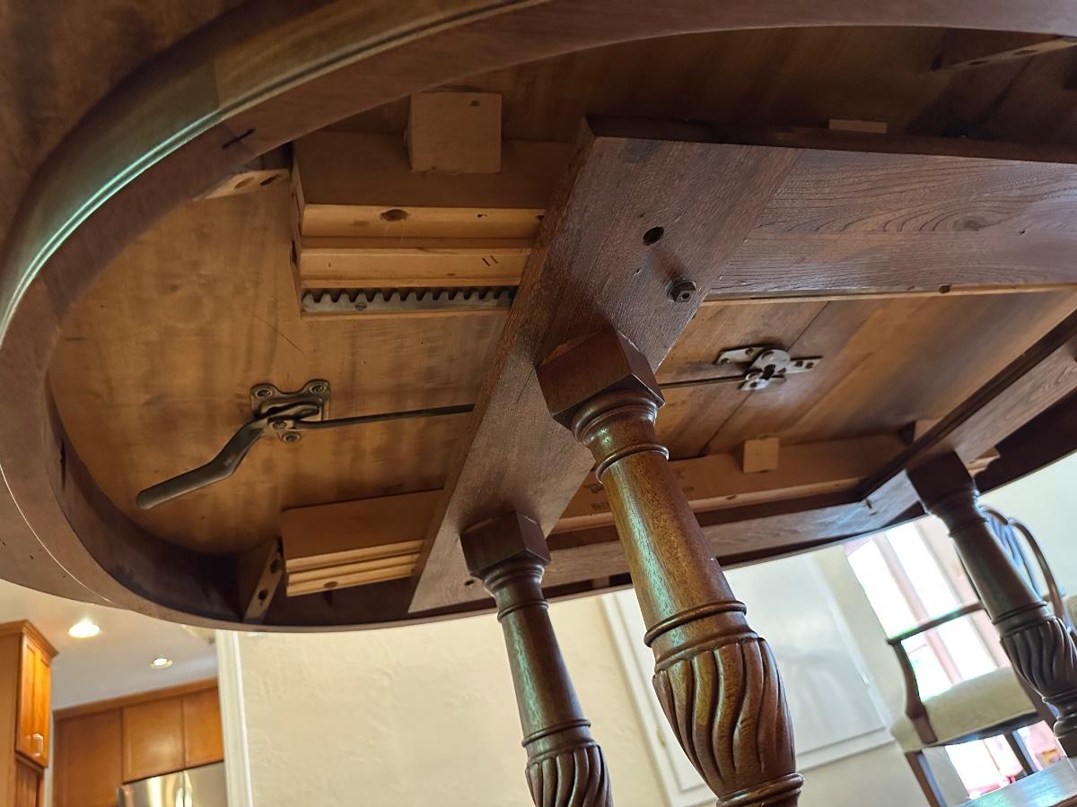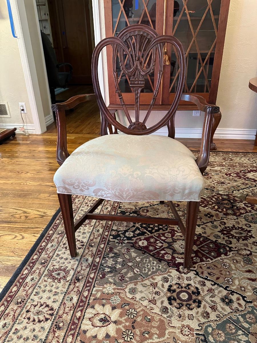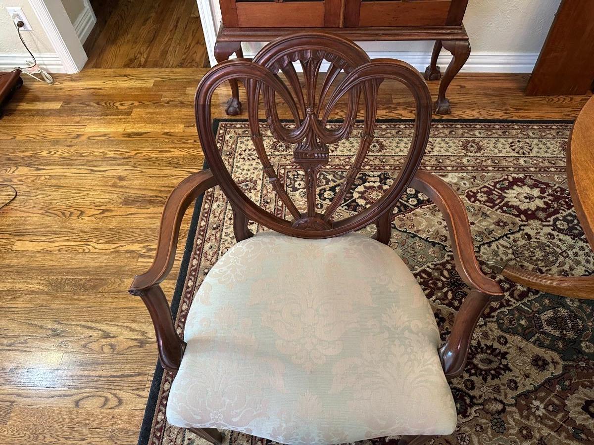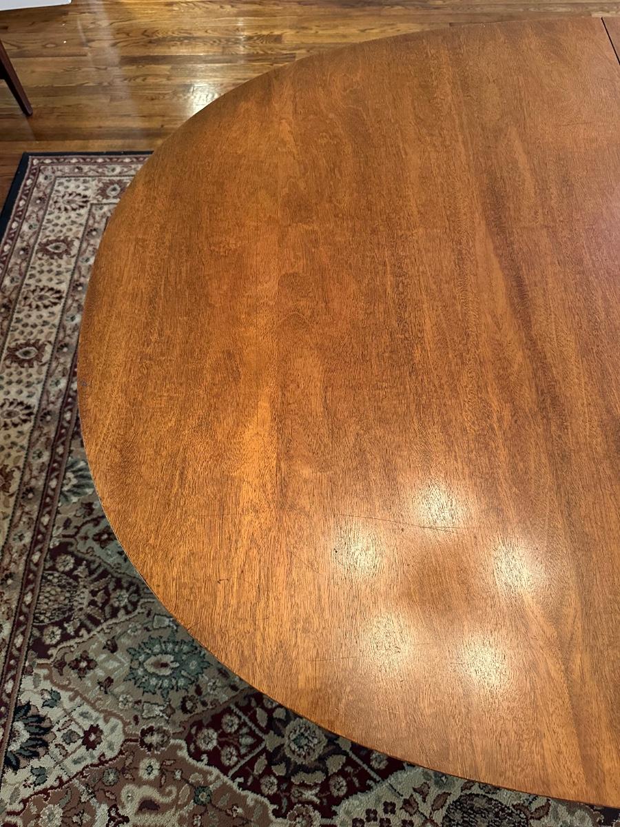 DINING ROOM TABLE WITH 2 ARM CHAIRS, 6 SIDE CHAIRS AND 3 TABLE LEAVES