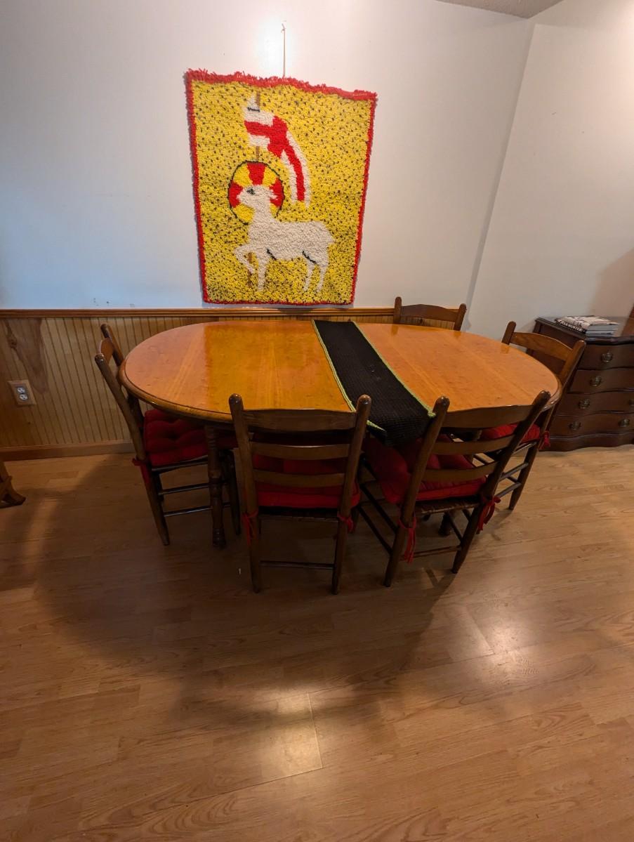 Dining Room Table With 5 Chairs.. Does have some wear Item is located in basement of home and will need to be carried up a flight of stairs.
