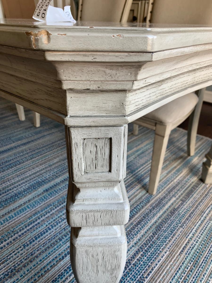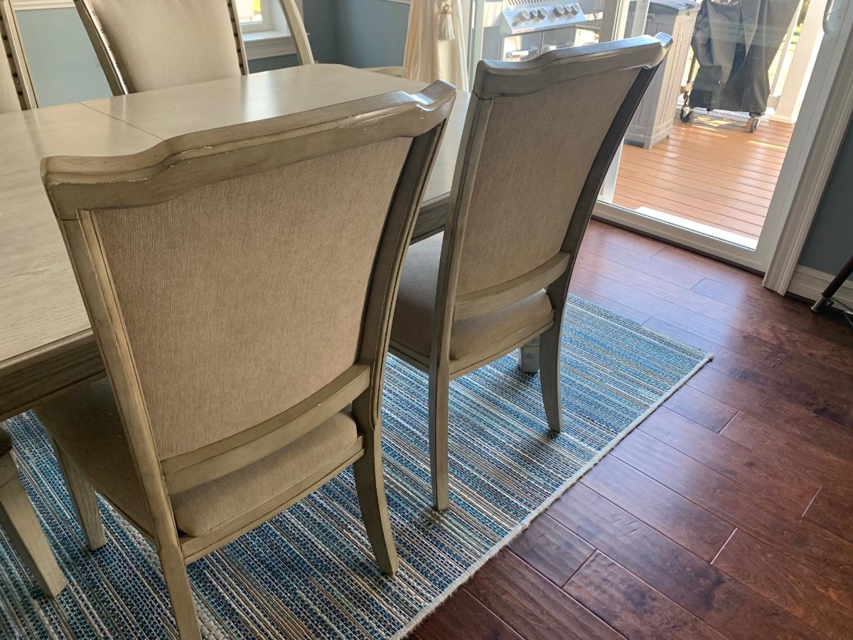 6 chairs in as shown - 2 more and the leaf also here. Buying as is, as found in this CLEAN estate. As always, NO BUYERS PREMIUMS and NO CREDIT CARD FEES.